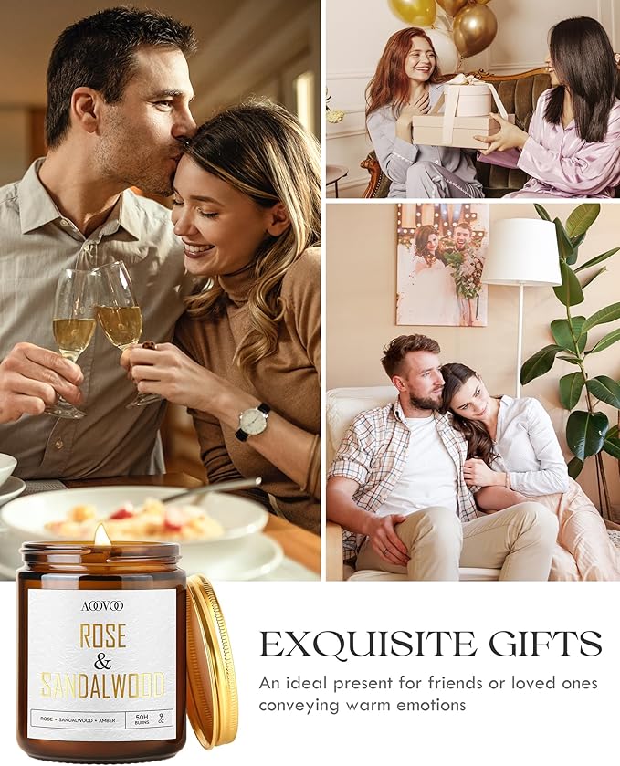 AOOVOO Rose Sandalwood Candles - 9 oz Scented Candles, Aromatherapy Candle, Soy Candle for Home Scented