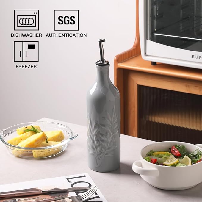 Sweejar Large Ceramic Olive Oil Dispenser Bottle, 24 Oz Relief Opaque Oil Cruet Protects Oil To Reduce Oxidation, Storage Vinegar, Soy Sauce, Coffee Syrup, Liquids, Set of 1 (Gray)