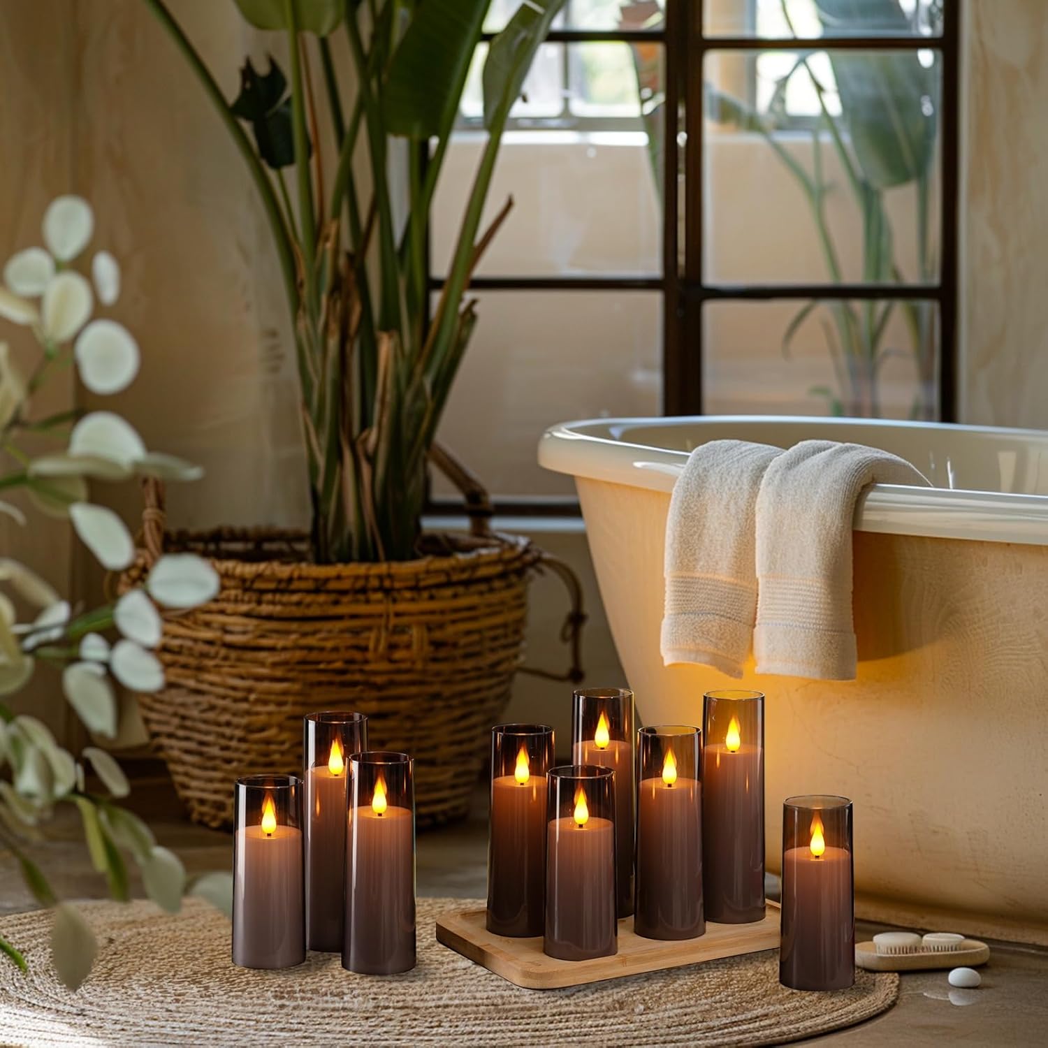 - Realistic Flameless Candles: Acrylic Candle Shell + 3D flame, flickering softly and giving these battery candles a warm yellow glow, creating a cozy feeling, which is perfect for home, festival decorations, and gifts