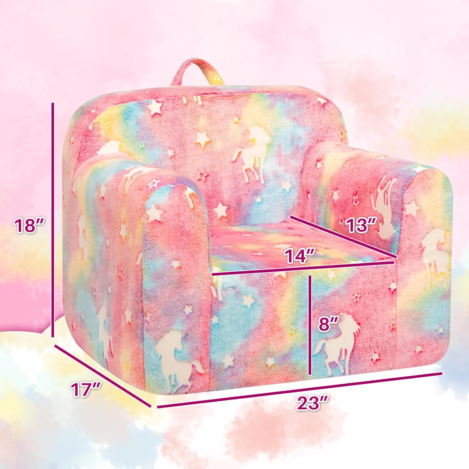 ALIMORDEN Kids Ultra-Soft Snuggle Foam Filled Chair, Cuddly Sherpa Reading Couch for Boys and Girls,Glow-in-The-Dark Unicorn Pattern
