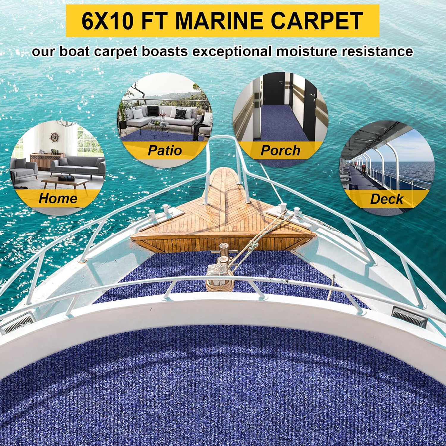 - Premium Indoor Outdoor Carpet: Color: Deep Blue; Size: 6 x 10 FT (1.8 x 3 m); Thickness: 0.2 in(5.0 mm). Crafted from high-quality polyester fibers, our boat carpet boasts exceptional moisture resistance, durability, shape retention, and colorfastness, ensuring a long-lasting and vibrant addition to your space.