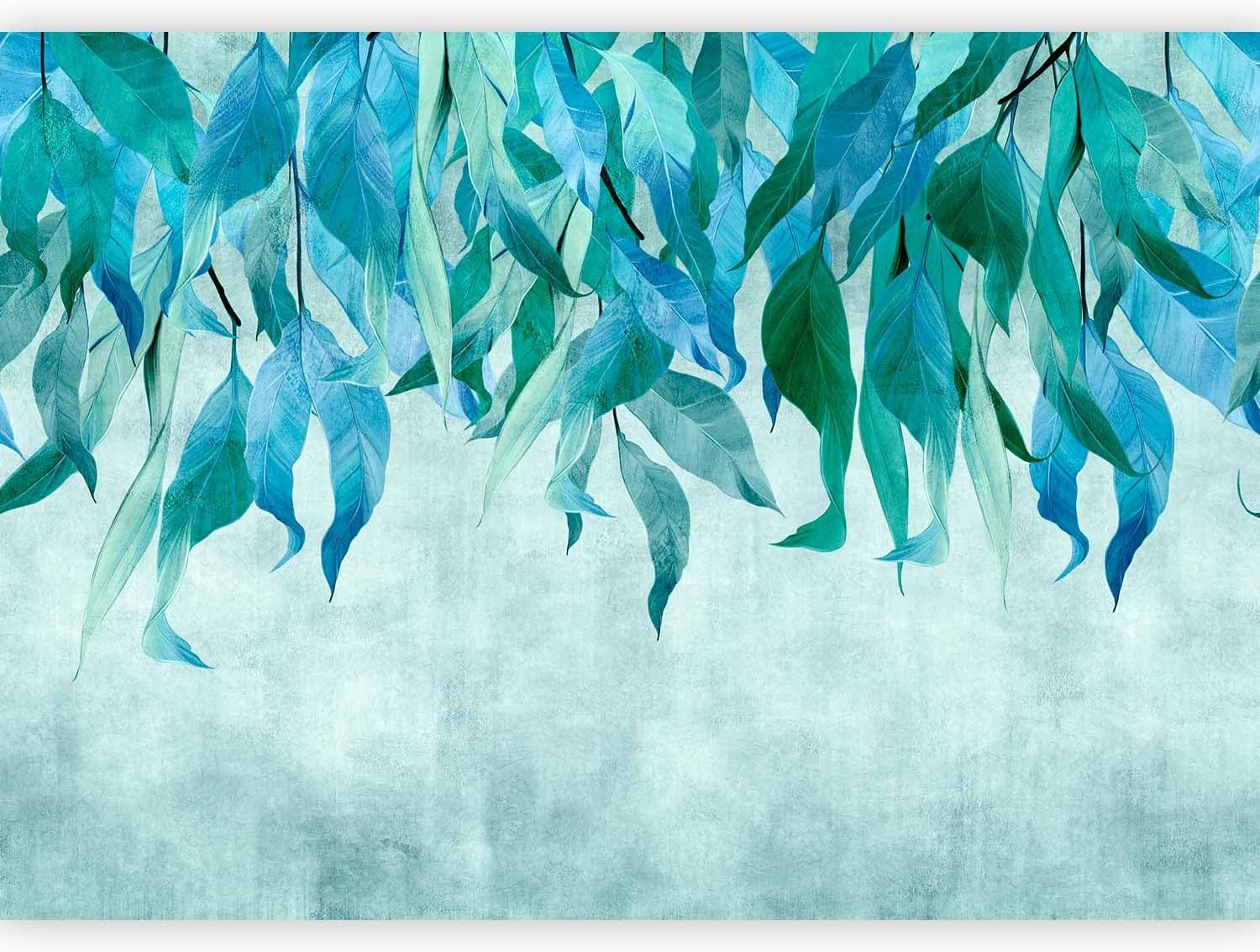 artgeist Wall Mural Hanging Leaves 197x138 in - Non-Woven Wallpaper Fleece Wall Decor Photo Print Picture Image Design Nature Botanical Concrete Green Blue b-C-10146-a-b