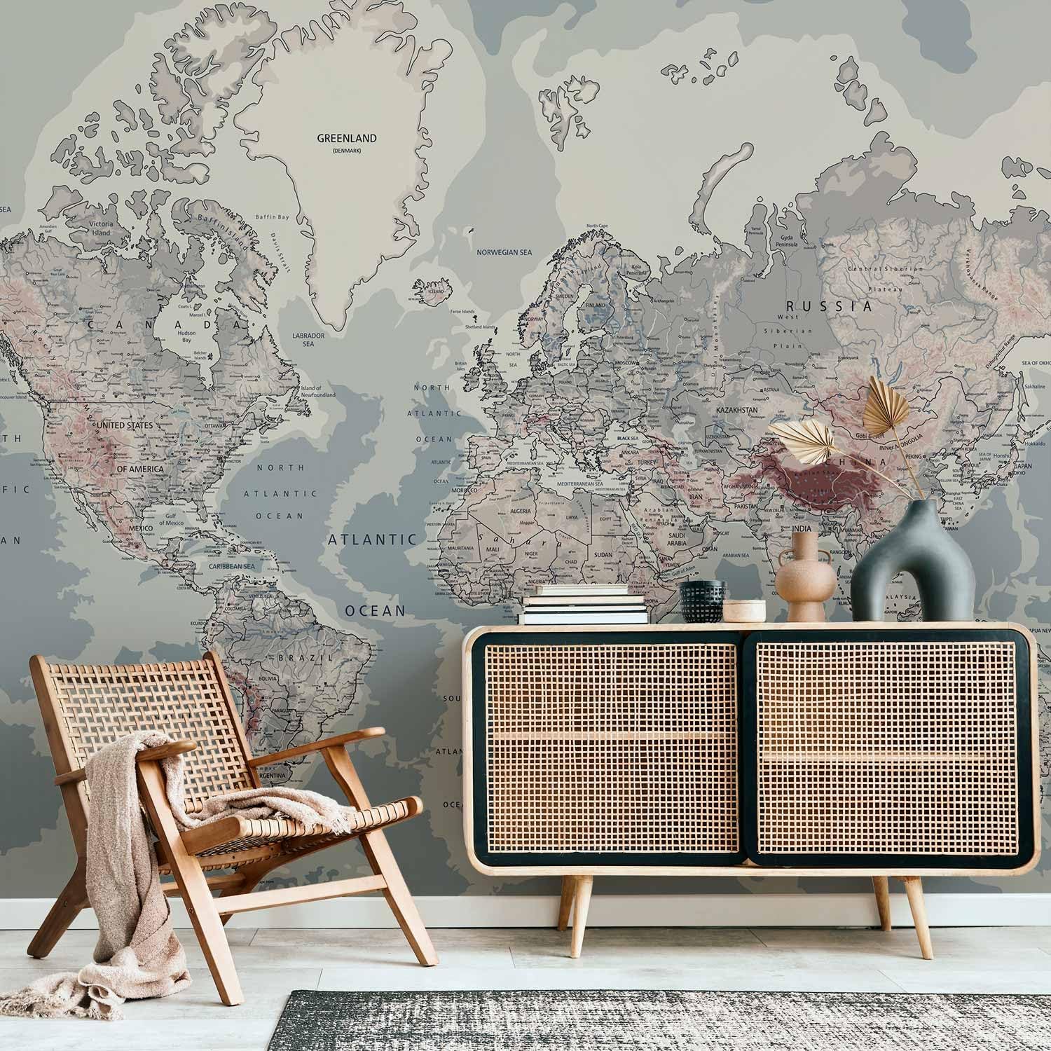 artgeist Premium Wall Mural World Map 197x138 in - Non-Woven Wallpaper Fleece Wall Decor Photo Print Picture Image Design Home Map of The World k-A-0061-a-c
