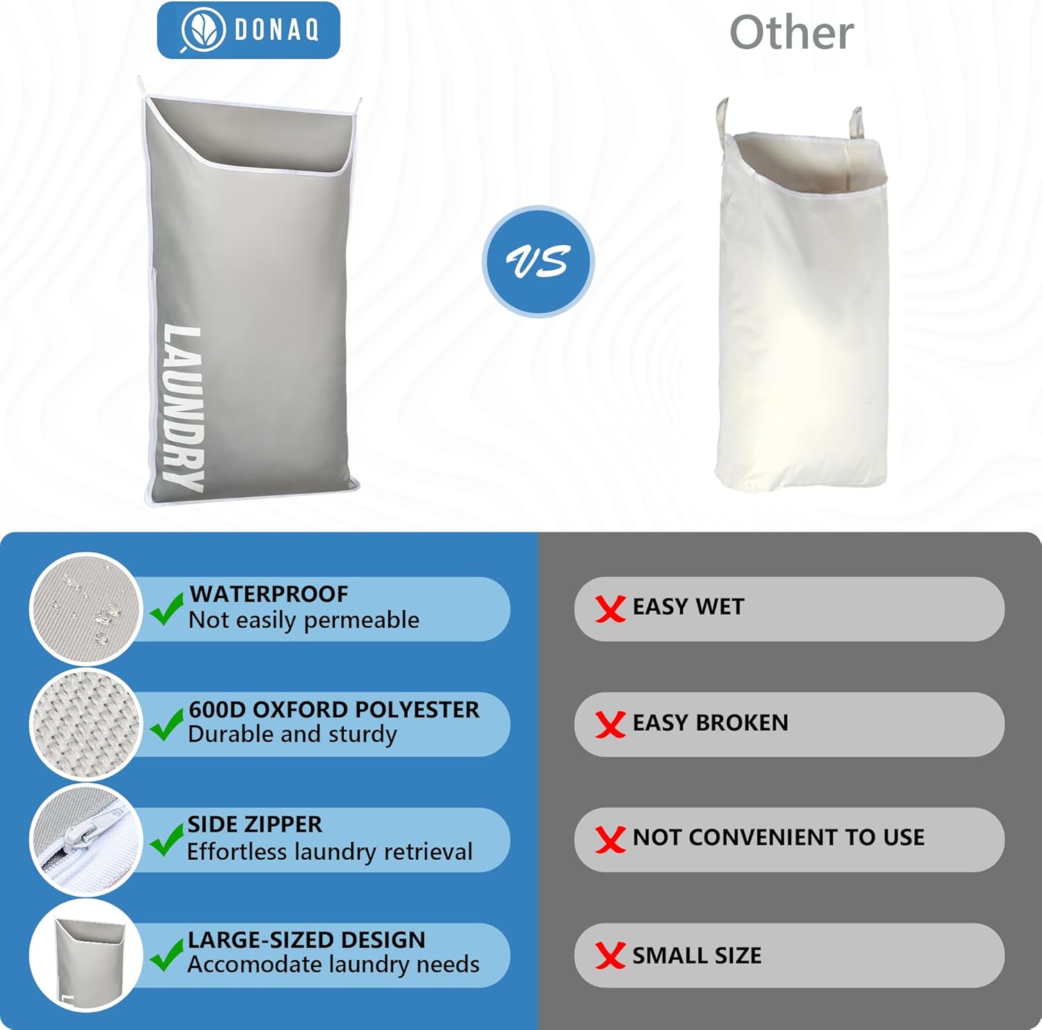 Hanging Laundry Hamper Bag XL 40x22", Space Saving over the Door Storage Bags, Behind the Door Hampers for Dirty Clothes & Wall Mounted Basket for Bathroom, Organizer for Small Room Spaces RV