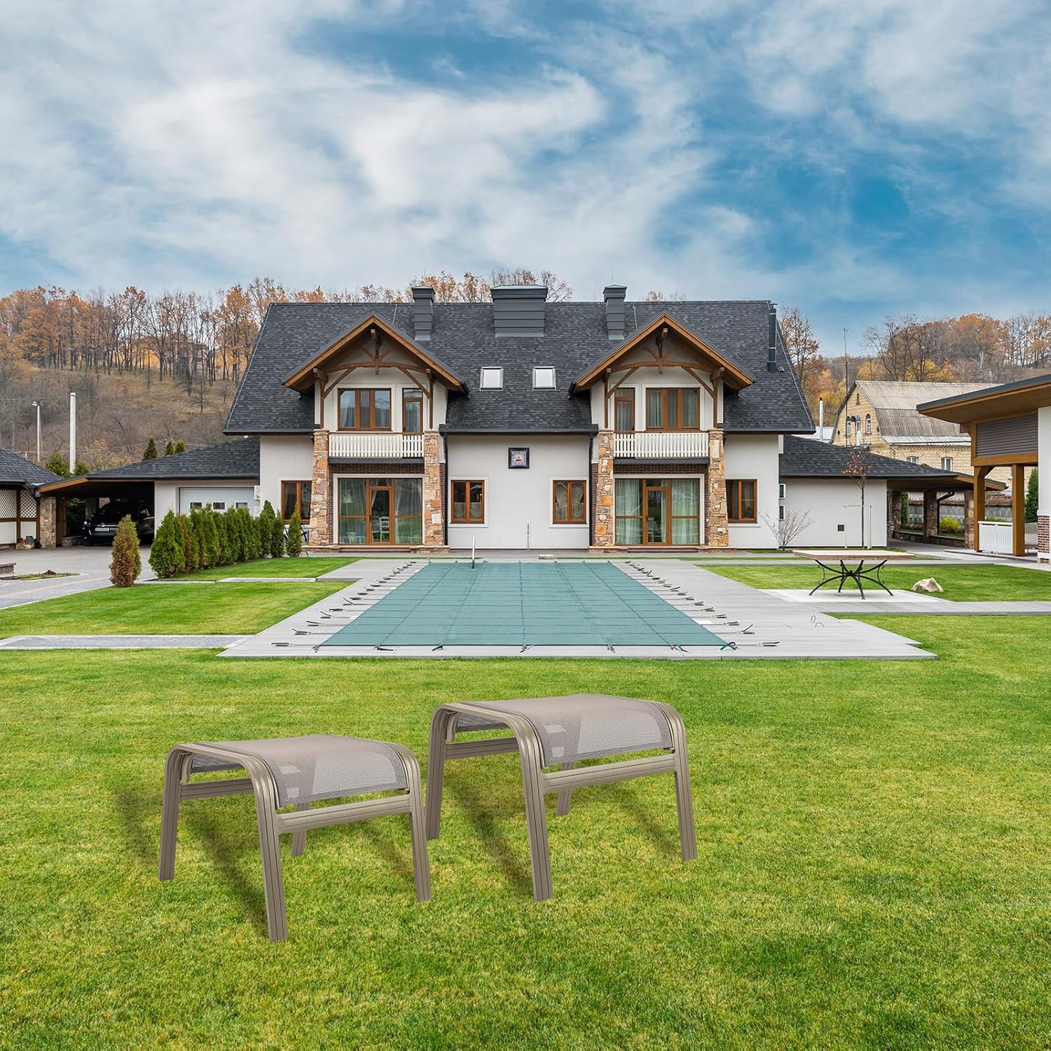- Solid Frame & Textilene Fabric-Structure of the patio ottomans are made of sturdy aluminum and resin textliene, so the ottomans are stable and resilient.In addition, the powder coated surface can prevent chair from rusting for long term use.