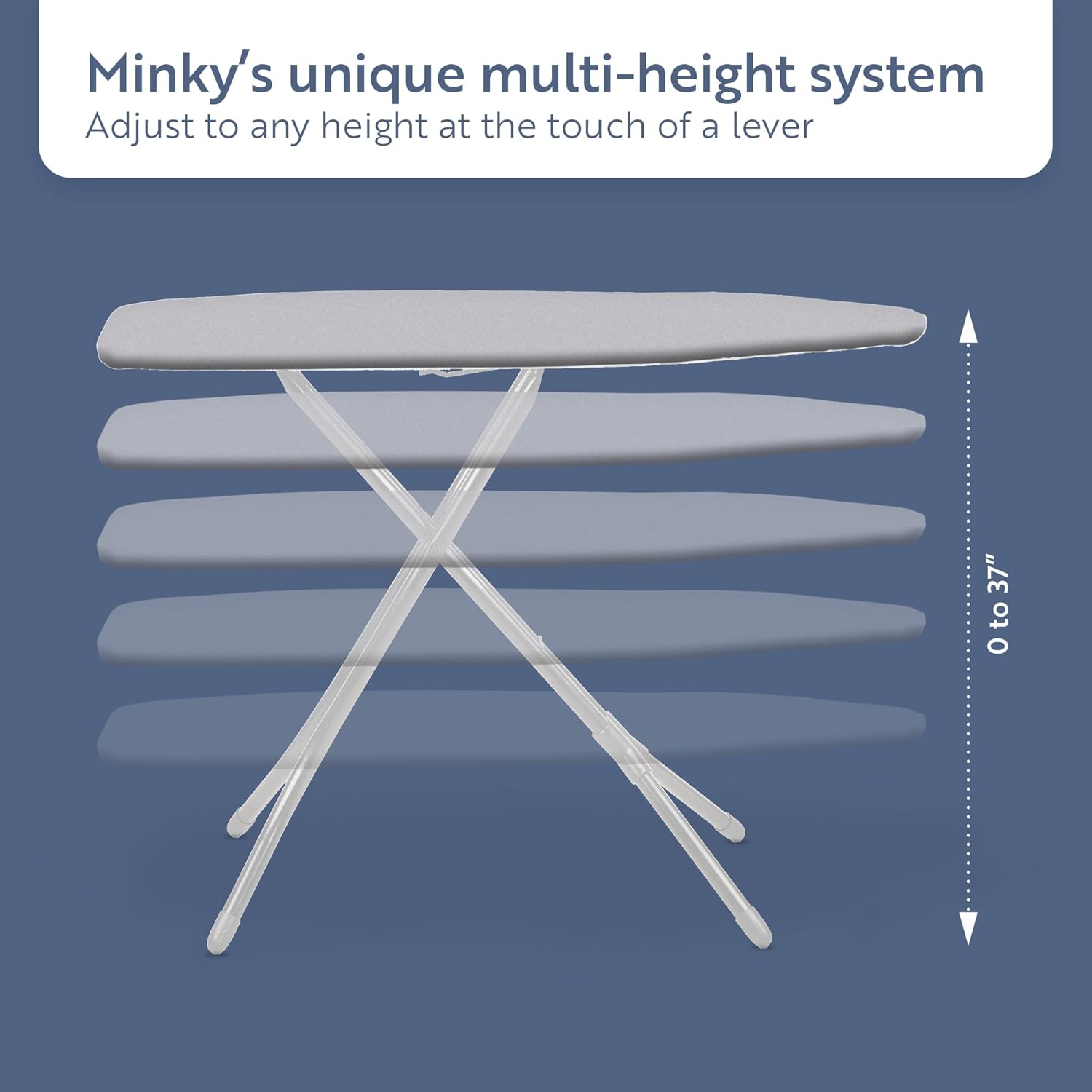 - IRONING SURFACE - Ironing surface is 43” x 14”. Board features infinite height adjustment up to 37". 3 Year Manufacturer’s Warranty.