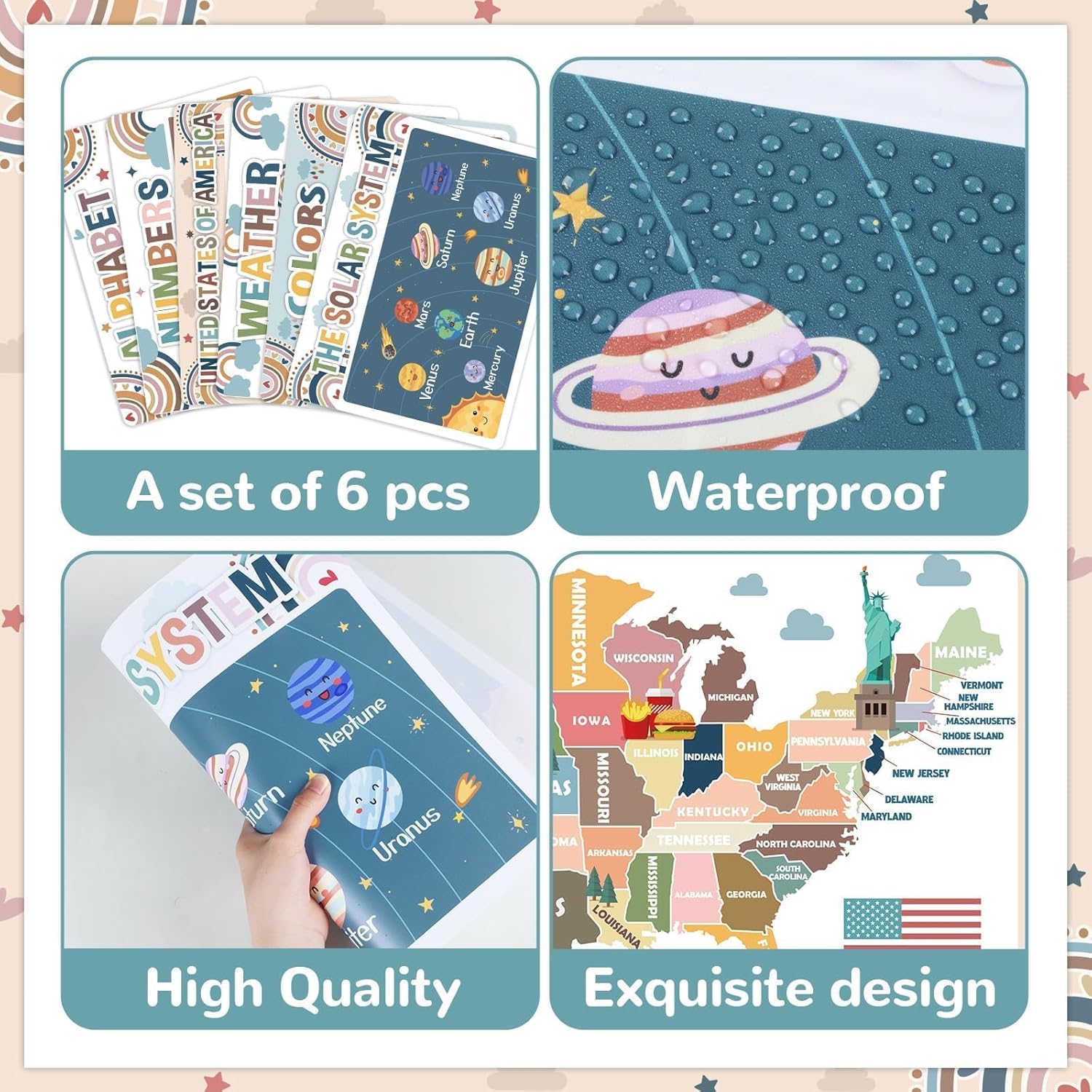 - Educational for kids placemats: You will receive 6 kids placemats for dining table, featuring 6 different designs including colors, alphabet, maps, numbers, weather, and solar system themes. These excellent early education tools help you incorporate early learning into your child's daily life, turning dinnertime into a time for learning. Ideal for preschool and elementary school children.