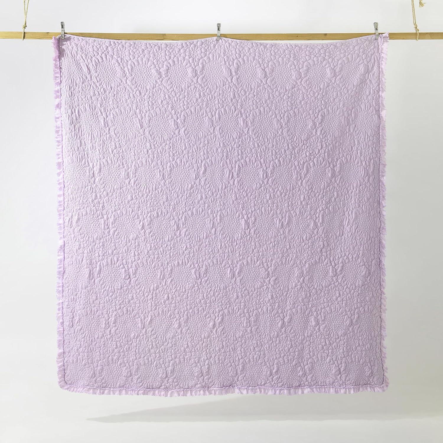 HORIMOTE HOME Lavender Ruffled Quilt Queen Size, Stone-Washed Microfiber Lightweight Crinkled Farmhouse Rustic Shabby Chic Bedding Set, 3 Pieces Reversible Bedspread with Pillow Shams for All Season