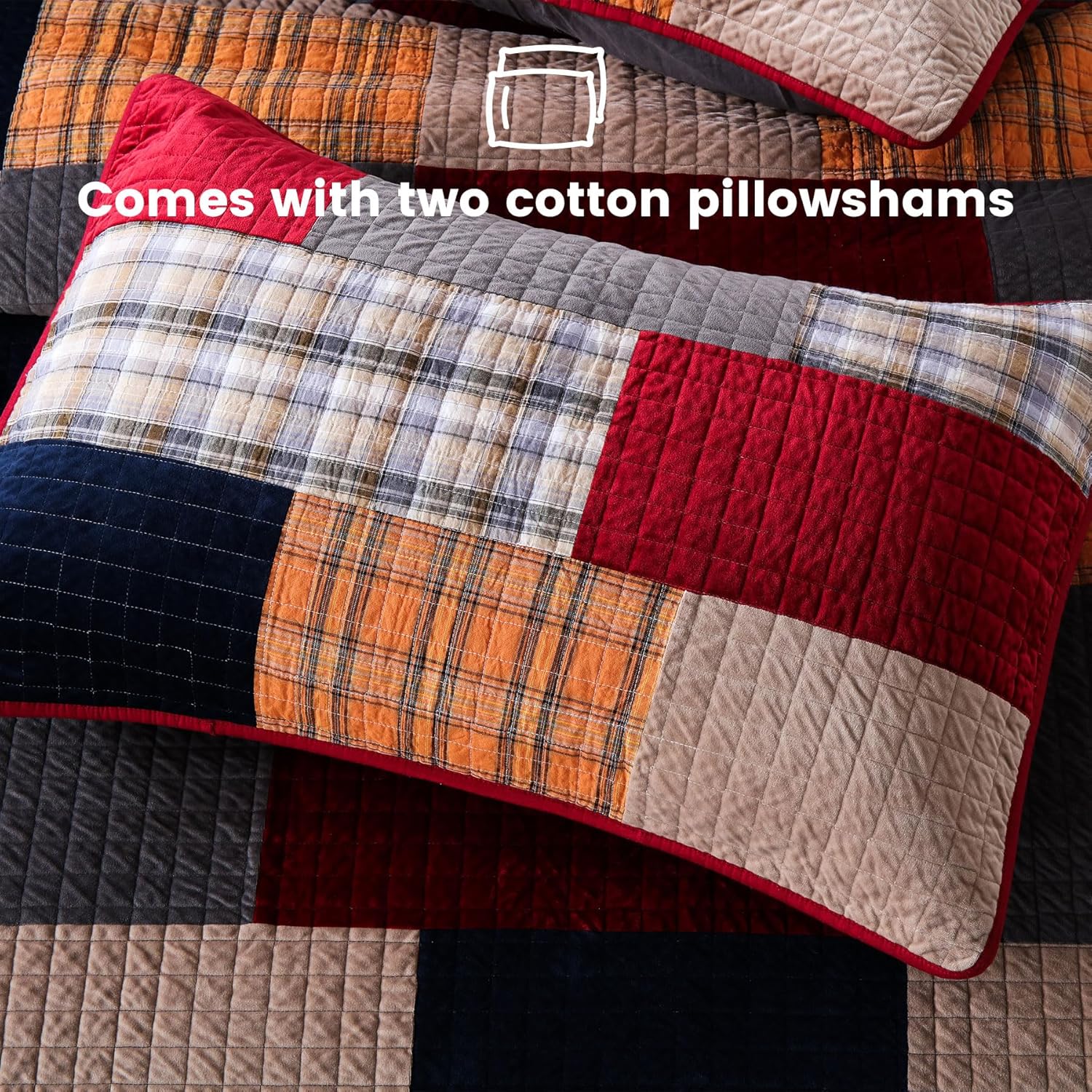 Secgo California King Comforter Set for Bed - 100% Cotton Quilts Cal King Size, Black Bedspreads (120 * 110 Inch) with 2 Pillow Shams, Patchwork Reversible Lightweight Bedding