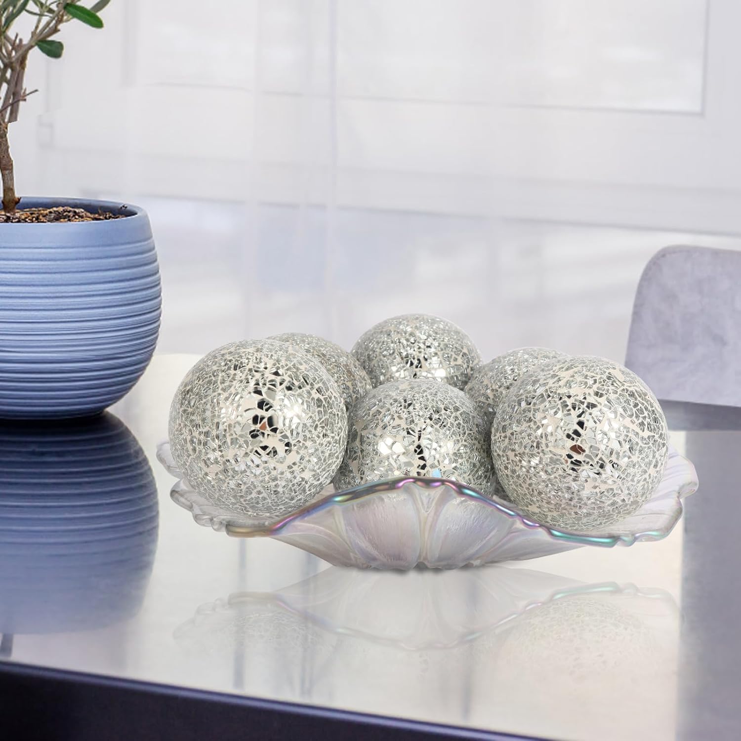 6Pcs Decorative Ball for Bowls, 8cm/3.15inch Mosaic Glass Centerpiece Decoration Balls Mirror Glass Ball Fillers for Home Decor Dining Tables Wedding Party (Sliver)