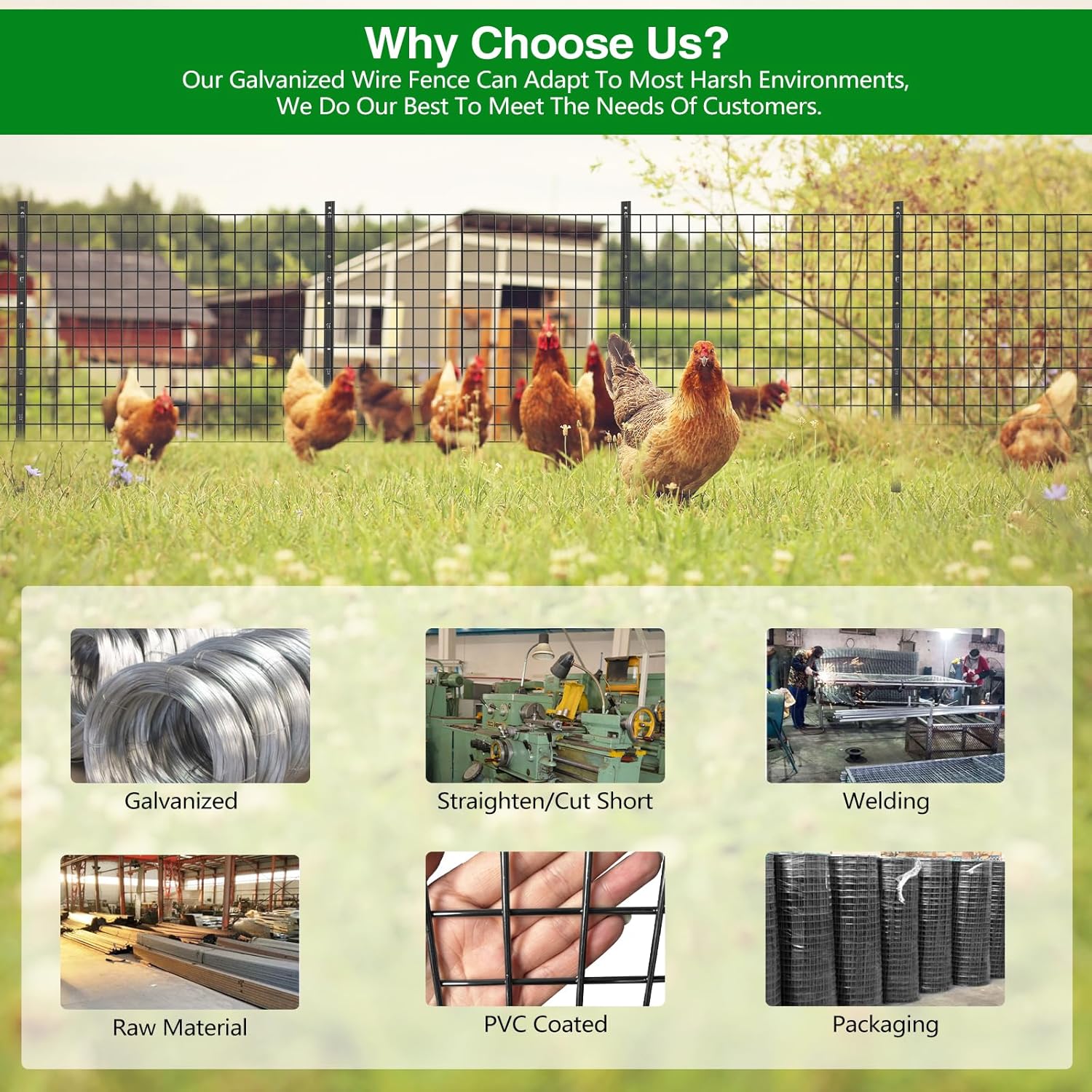- π£π₯ππ ππ¨π π€π¨ππππ§π¬ πππ‘ππ: Welded mesh fence is made of heavy-duty galvanized wire and available in black vinyl coating, its smooth surface makes it easy to clean, protects the environment and does not harm animals to maximize rust resistance and longevity.
