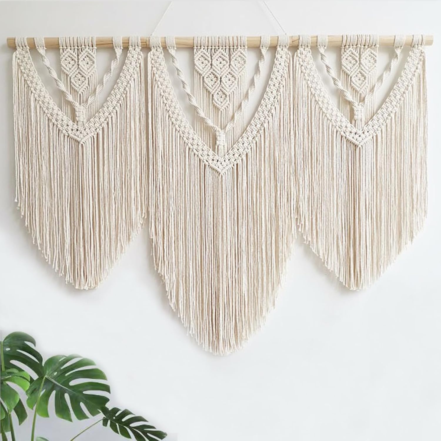 - Easy to Install: The package comes with 3 separate parts of short macrame wall hangings which could be easily connected together with the screws inserted in the wood rod.