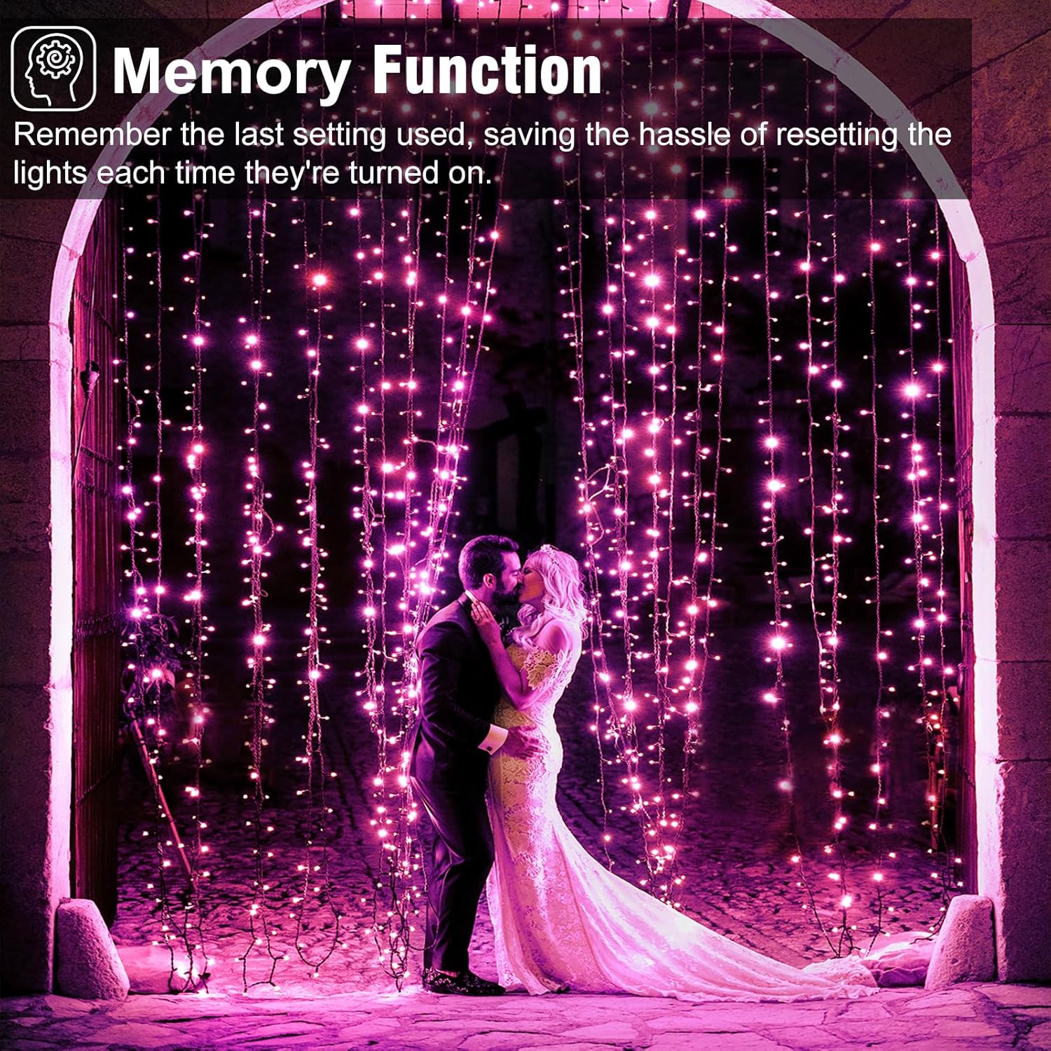 - ă8 Lighting Modesă: This pink string lights has 8 different lighting modes to choose from: combination, in waves, sequential, slo-glo, chasing/flash, slow fade, twinkle/flash, steady on. Press the button on the adapter to change the flashing modes. Moreover, built-in memory chip will save your last mode setting.