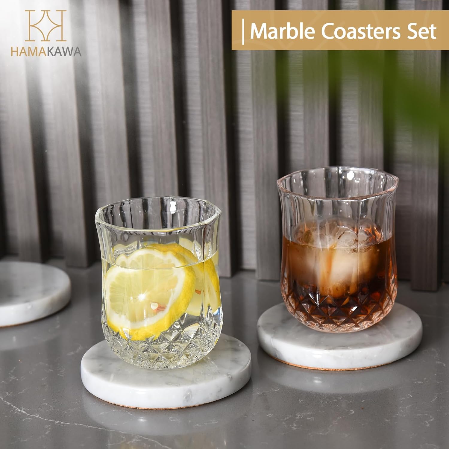 - Sturdy and Durable: Made from solid genuine raw marble cut coasters, hand-carved and polished, they are thick and sturdy, resistant to cracking and wear and tear, ensuring durability for years to come
