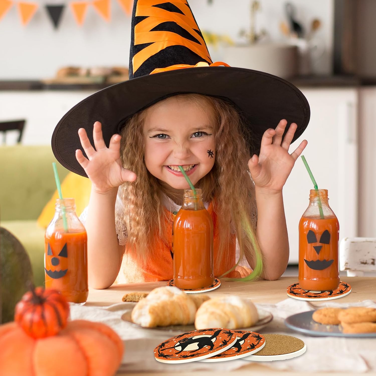 - DELICATE DESIGN: Our coasters are Halloween themed, taking orange as the background color, patterned with black cats, vintage and eye-catching, which will be the perfect complement to your Halloween and everyday table decor.