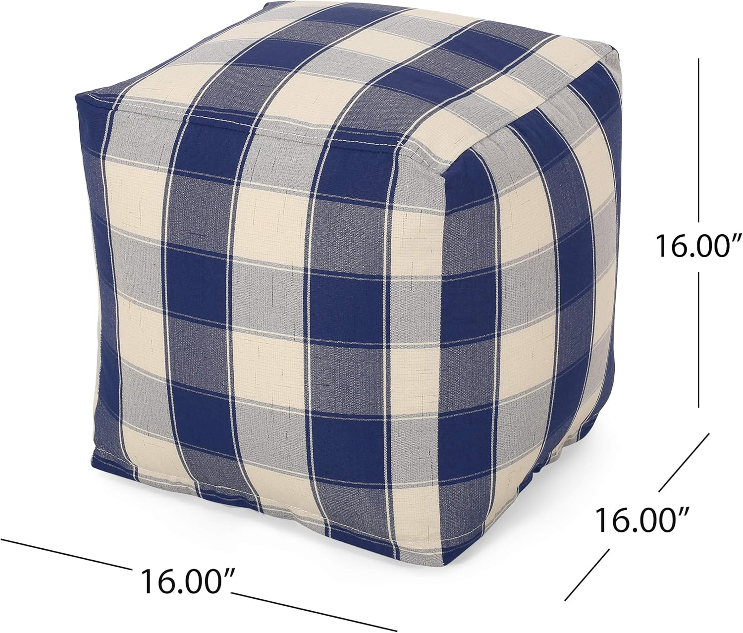 GDFStudio Modern Fabric Checkered Cube Pouf Ottoman Foot Stool - Bean Bag Floor Chair - Foot Rest Couch for Living Room Bedroom,Ivory and Navy Blue,16"" x 16"" x 16"", 313655N