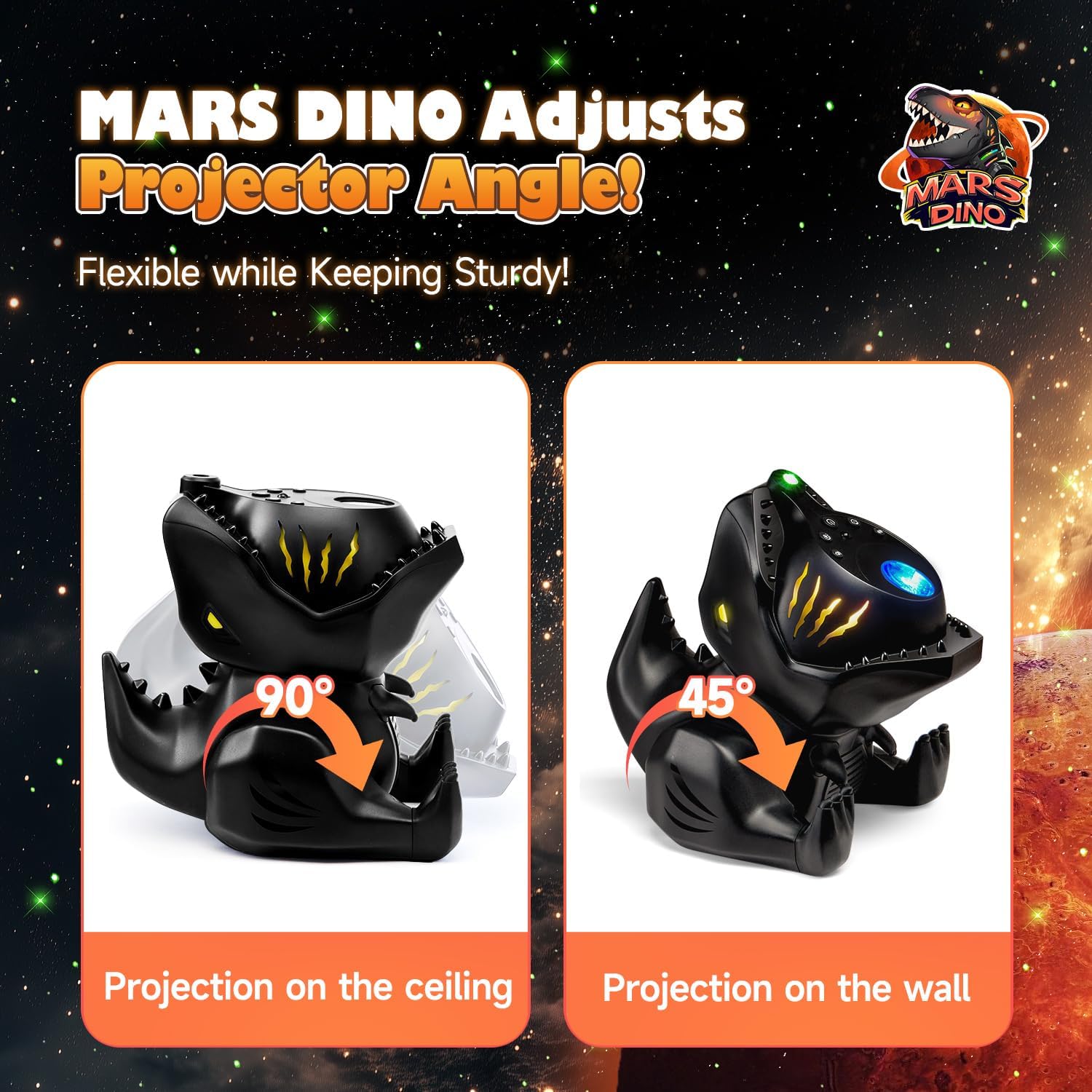 - 144COLOR MODES DINOSAUR GALAXY PROJECTOR: Dinosaur night light projector brings most vibrant galaxy light with its BRIGHT & VIVID RGB galaxy light colors & 144lighting effects. 3 light rotation speeds, dinosaur night light projector galaxy projector for bedroom transforms yr ceiling into an awesome starry night,making it a cinch to fall asleep. also with its coolest Dinosaur Design, Dinosaur dinosaur light projector galaxy projector star projector night light projector for bedroom will become your night buddy & awesome bedroom decor! If u want to see fantastic galaxy light and shiny star lights, star projector dinosaur bedroom decor, dinosaur night light projector is sure to be ideal for u.