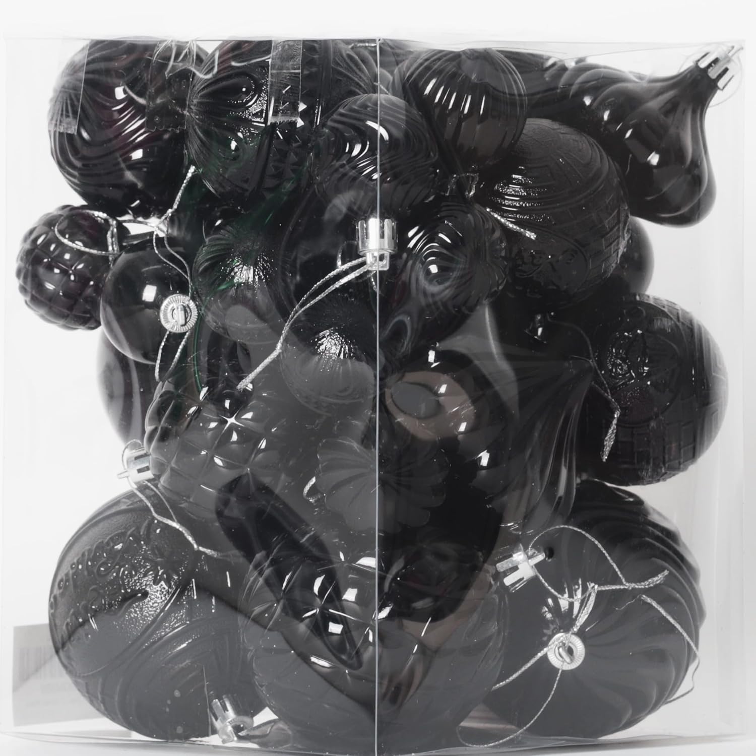 Christmas Ornaments Set with 36pcs Shatterproof Christmas Tree Decorations Multi-Size Christmas Ball Ornaments with 7 Styles Black