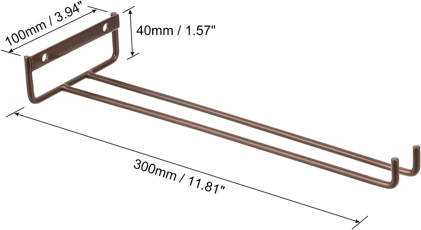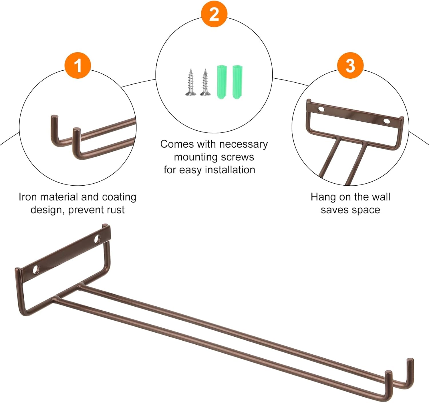 uxcell 5Pcs Wine Glass Rack, 11.81 Inch Iron Wine Glasses Rack Under Cabinet Stemware Rack - Wall Mountable Wine Glass Holder Storage Hanger for Bars Coffee Restaurants Kitchens, Bronze