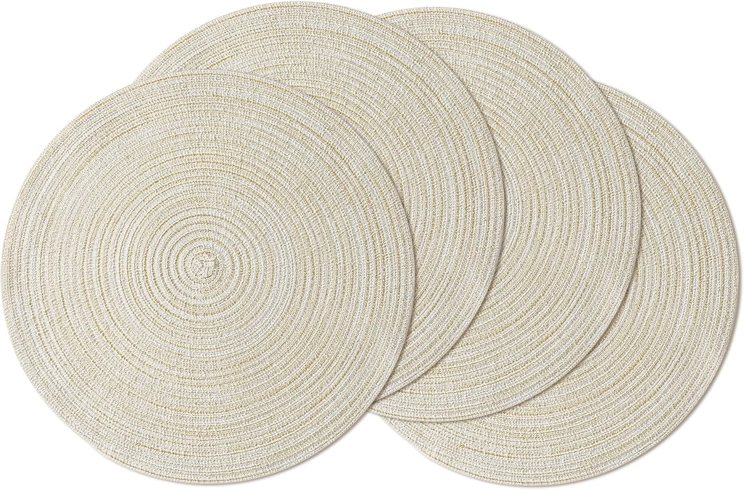 Leetaltree Round Placemats Heat and Slip Resistant Cotton Table Mats, Washable Bohemian Placemats for Dining Tables (White Beige, Set of 4)