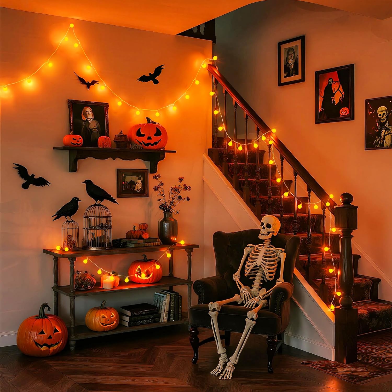 - 【Lovely Orange Halloween Lights】: The orange string lights come with frosted globes can create a soft, cosy light to take care of your eyes. The lighting effect is irreplaceable by other LED string lights. Lovely orange string lights are waiting for you to show up and take it home. It’s a stunning Halloween decoration