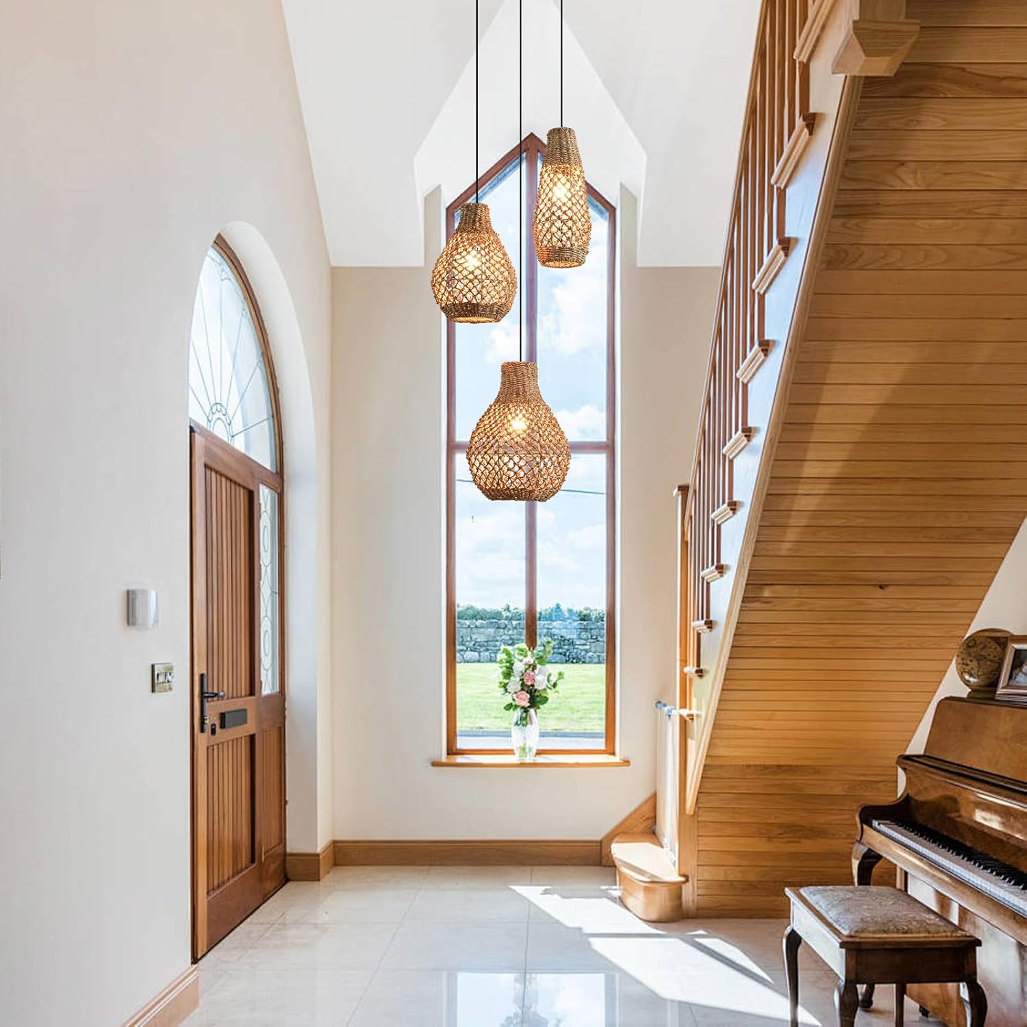 - Applicable places: Bohemia Rattan Pendant Lightis suitable for farmhouse kitchen island;living room, dining room laundry room;corridor basement;and can also be used for commercial purposes;The hanging chandelier can also be fixed on flat or sloping ceilings