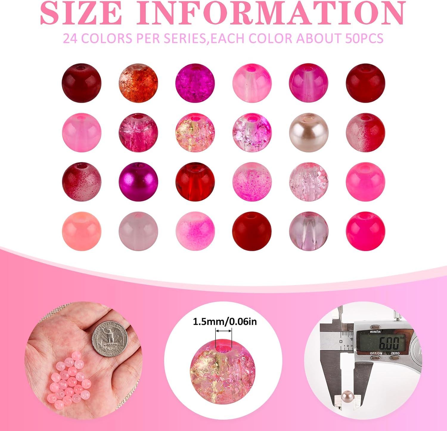 XSEINO About 1200PCS 6mm Glass Beads Bracelet Making Kit,24 Assorted Red and Pink Series Colorful Crystal Beads for Bracelet and Jewelry Making and DIY Crafts,Friendship Bracelets