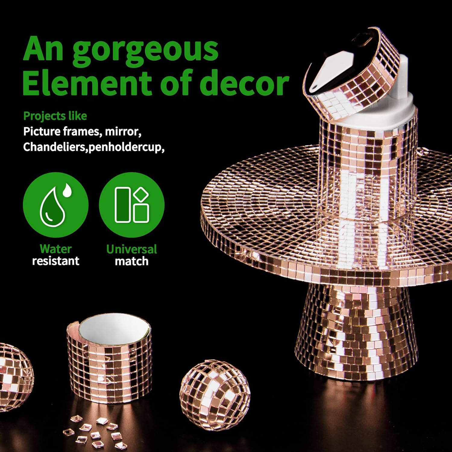 LONGKING 3776 Pieces Self-Adhesive Mirror Tiles, Square Mirror Stickers Mosaic Tiles, Glass DIY Craft Decoration, Disco Ball Tiles(Rose Gold)