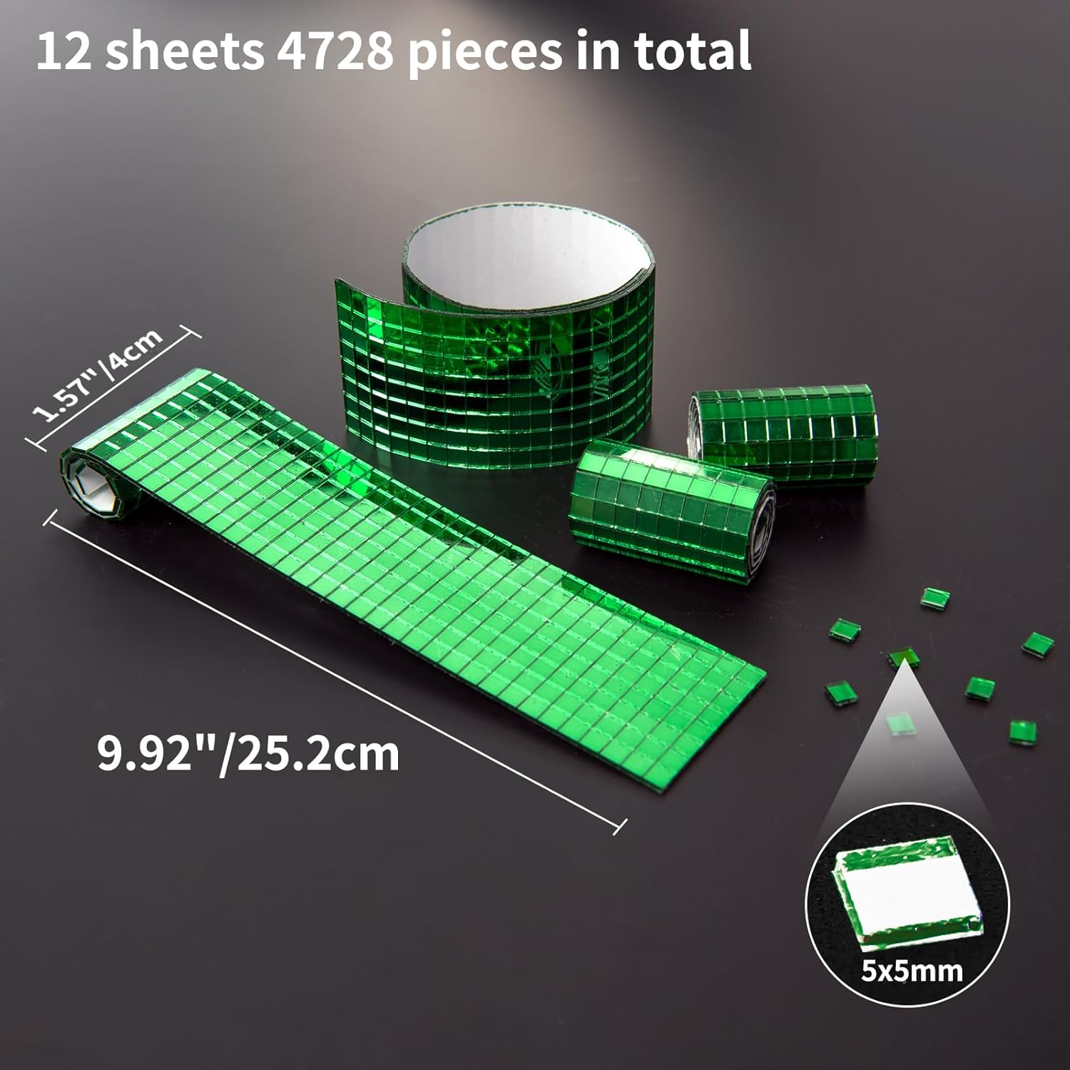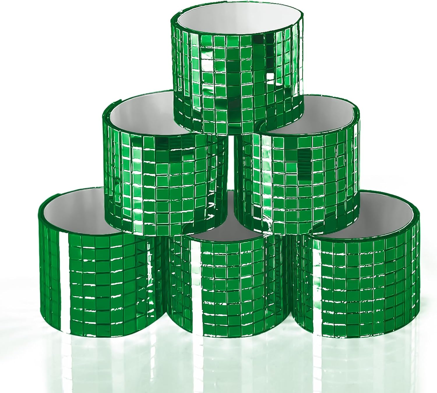 Art3dwallpanels 6 Pack Self Adhesive Glass Mirror Mosaic Disco Tiles Small Square Mirror Sticker for for DIY Disco Ball, Disco Cowboy Hat, Vase, Bottle, Interior Decoration, 2364 Pieces, Green