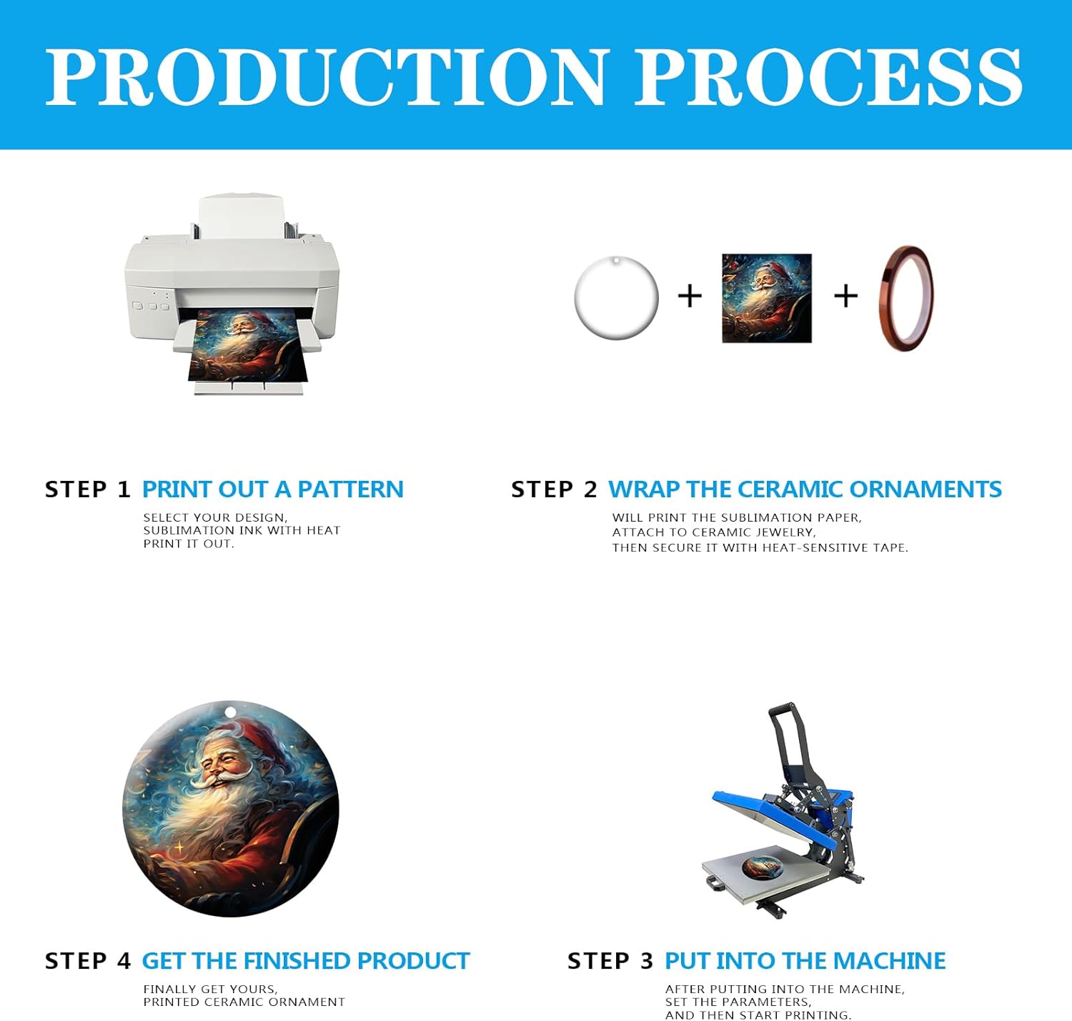 - 【Production process】Sublimation any personalized image on ceramic Ornament; Pressing temperature :180-190 ° C (356-374°F); Pressing time :240-260 S.