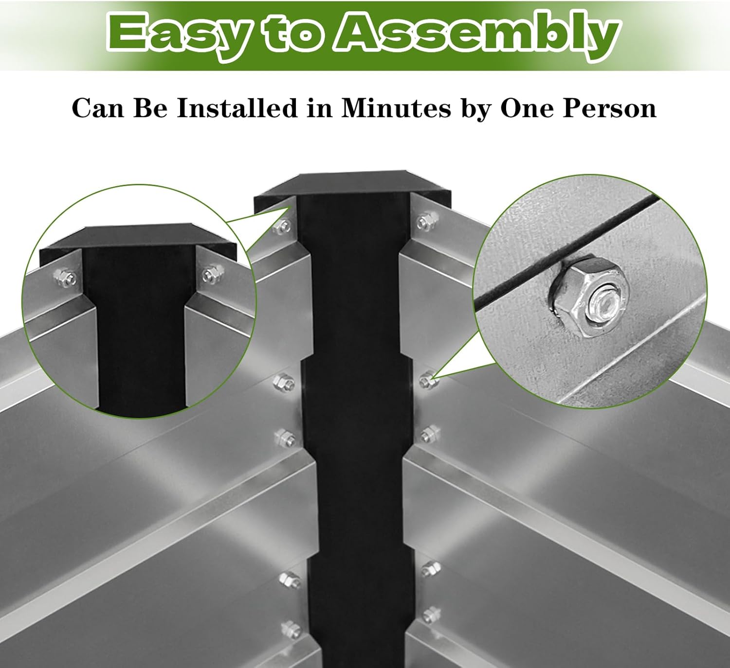 - 【Sturdy Construction】This planter raised beds are crafted from high-quality, galvanized steel that is rust-resistant and durable. It features robust support poles to enhance stability and withstand harsh weather conditions and multiple growing seasons.