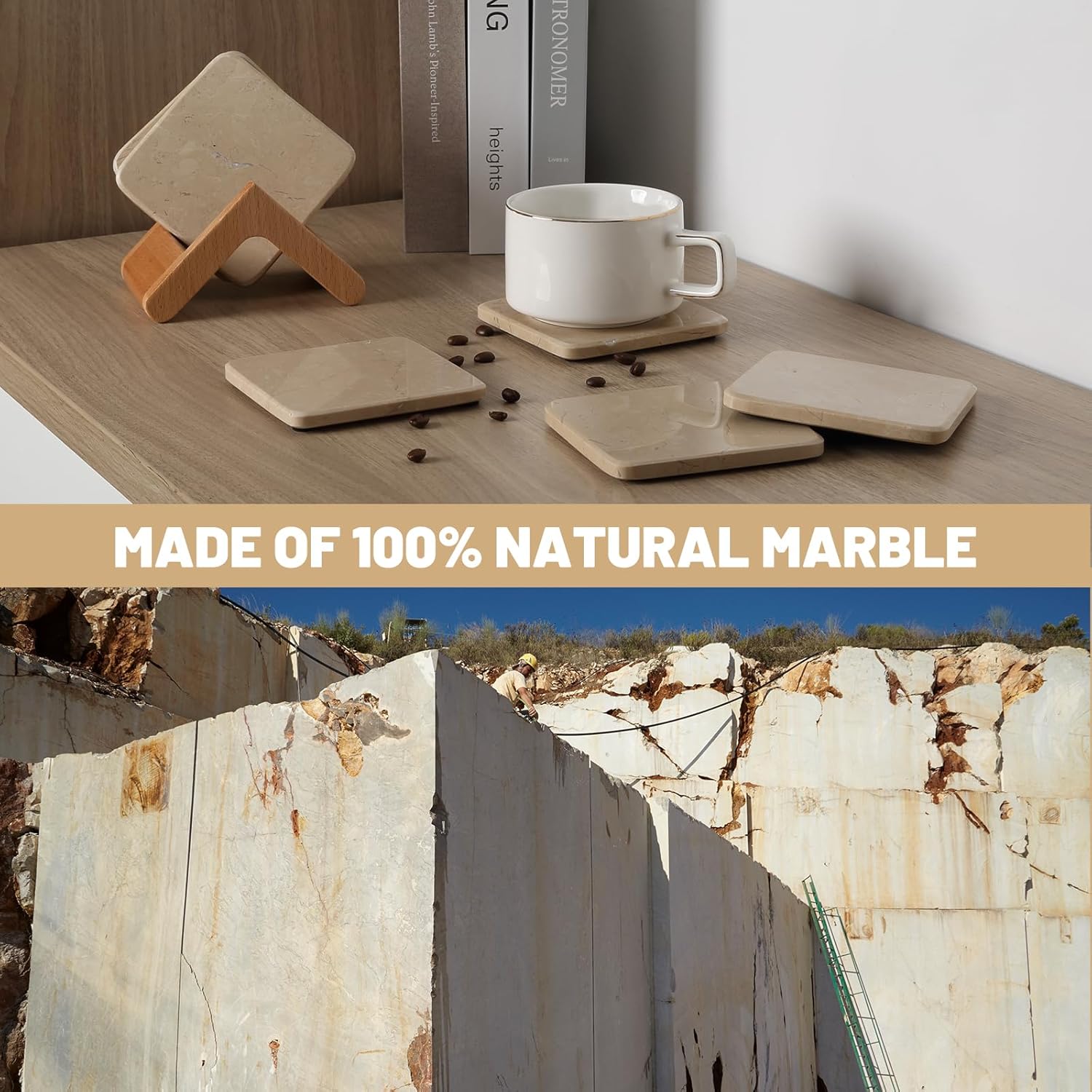 - Premium Solid Marble Coasters Set of 6 - Handcrafted from natural Crema Beige marble, these square coasters feature unique veining for elegant table decor. Ideal for elevating your coffee table, office desk, or bar setup with timeless luxury