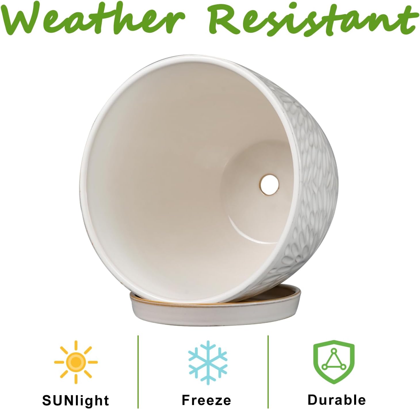 - Draining Hole and Tray: The pot for indoor plants has a drainage hole at the bottom which prevents root rot. It also comes with a ceramic tray to catch excess water and keep your table and floor tidy