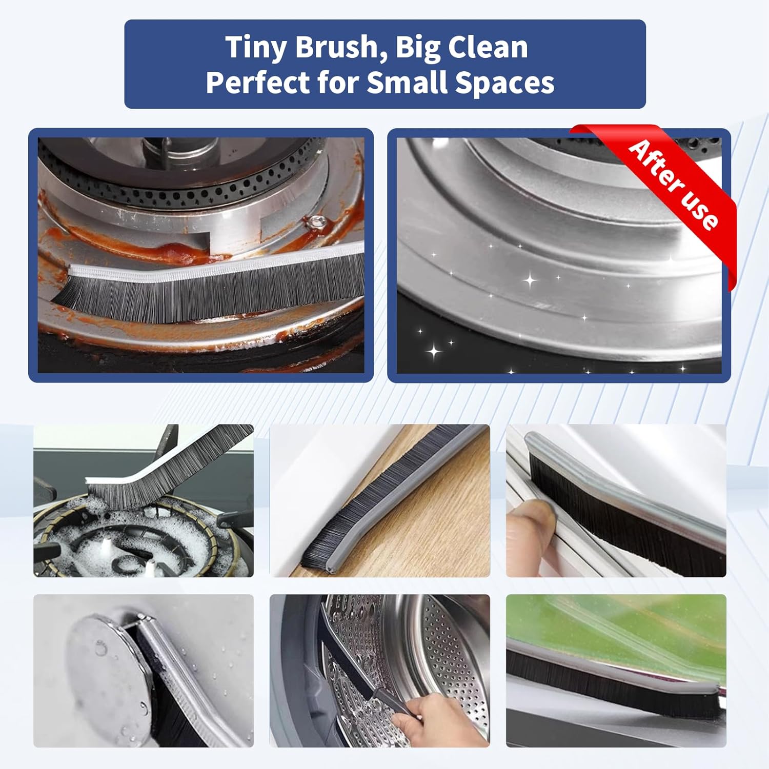 - Deep Cleaning Crevice: Dense and stiff bristles, Only 3mm thick, Easily clean deep into hard-to-reach crevices. A must-have cleaning tool for all housekeeper. Use it in the kitchen, bathroom, garage, pool to SAVE Time and Energy