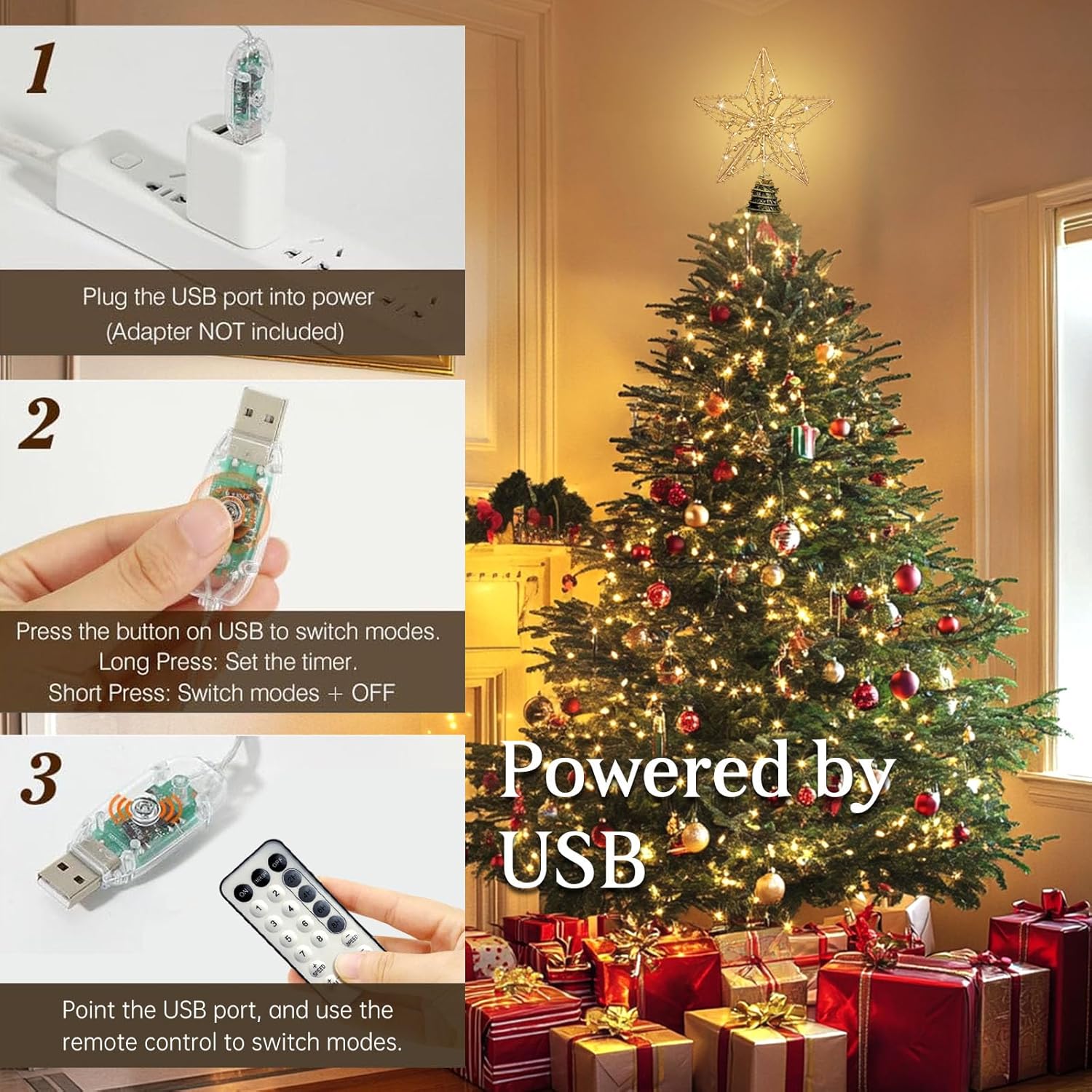 - π EASILY SETUP: 5 meter long line, which means it works great either indoor or outdoor.The tree topper easily attaches to the tree, due to the stable spiral base and construction.