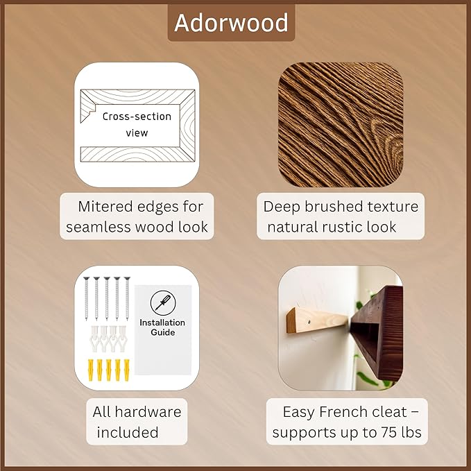 - LIGHTWEIGHT PIECE & EASY INSTALLATION: Hollow construction ensures it's lightweight for easy installation using a safe French cleat system, supporting up to 75 lbs. Includes a complete installation kit.