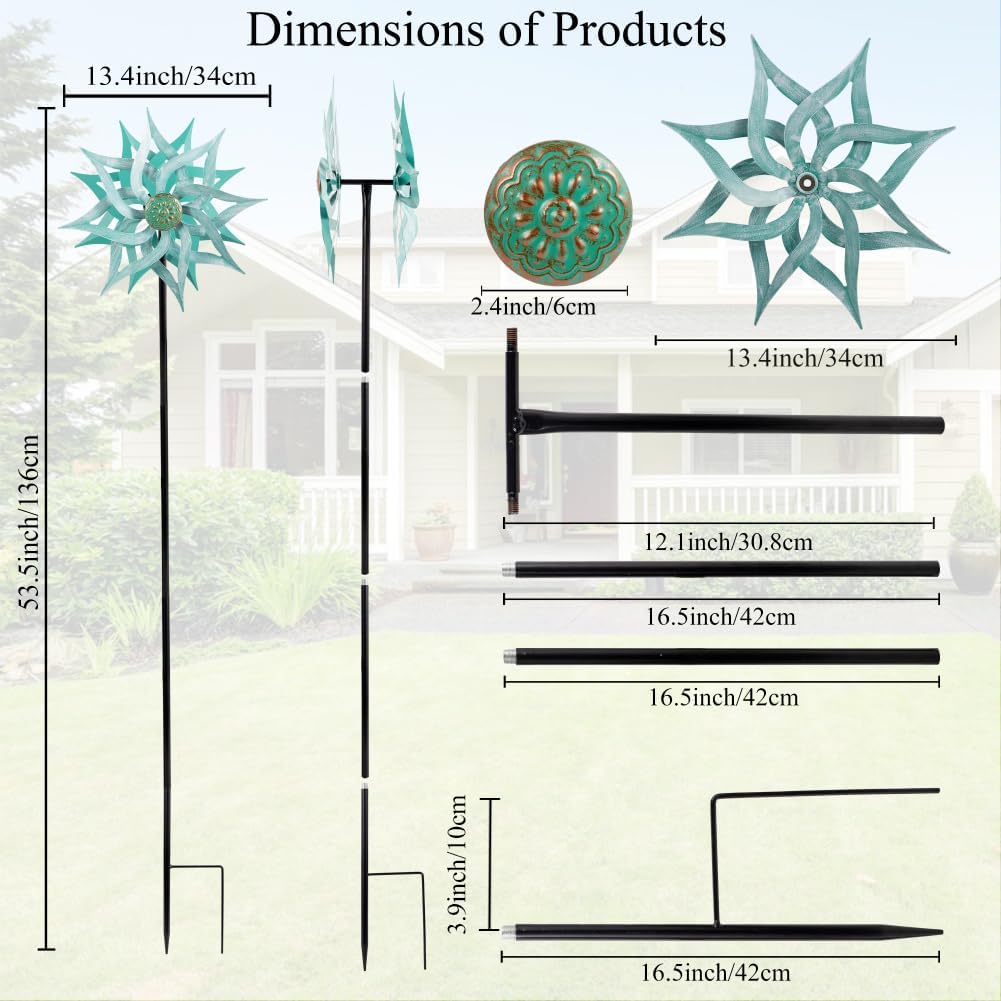 Viveta Metal Wind Spinners,53.5" Kinetic Wind Sculptures,Green Garden Pinwheels Double Layer Windmill for Outdoor Patio Lawn Yard