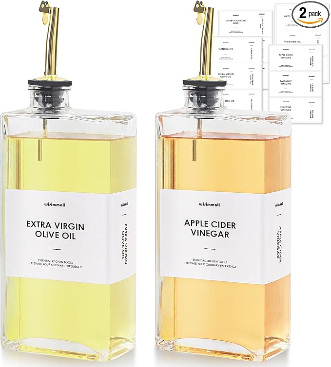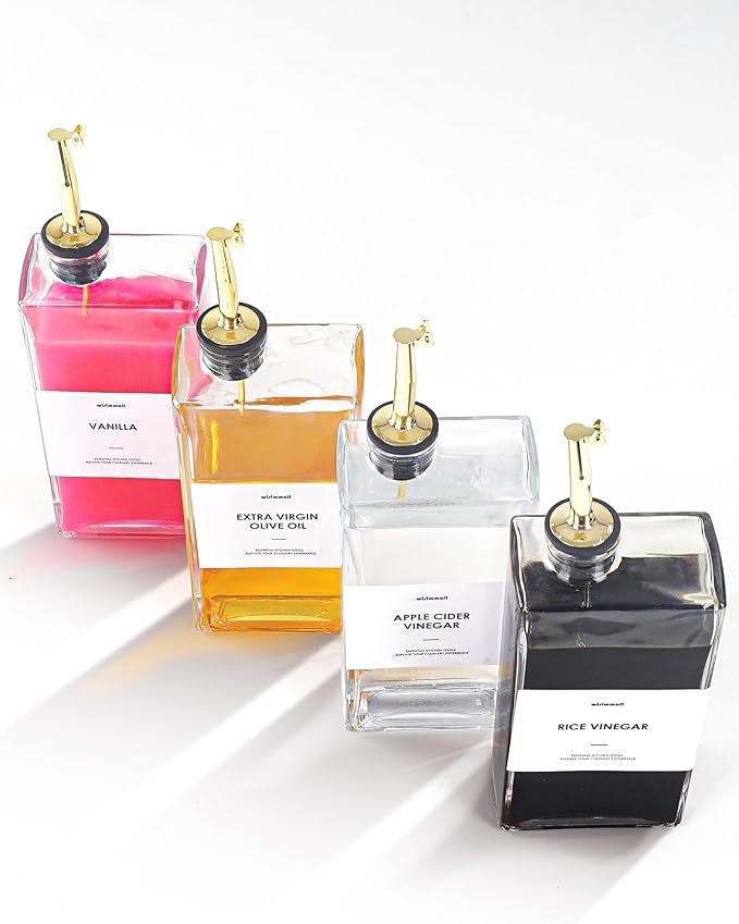 - [Perfect Present]:This oil and vinegar dispenser bottle is the perfect present for your loved ones or culinary enthusiasts, easy, beautiful, durable and functional, kitchen essentials for everyone!