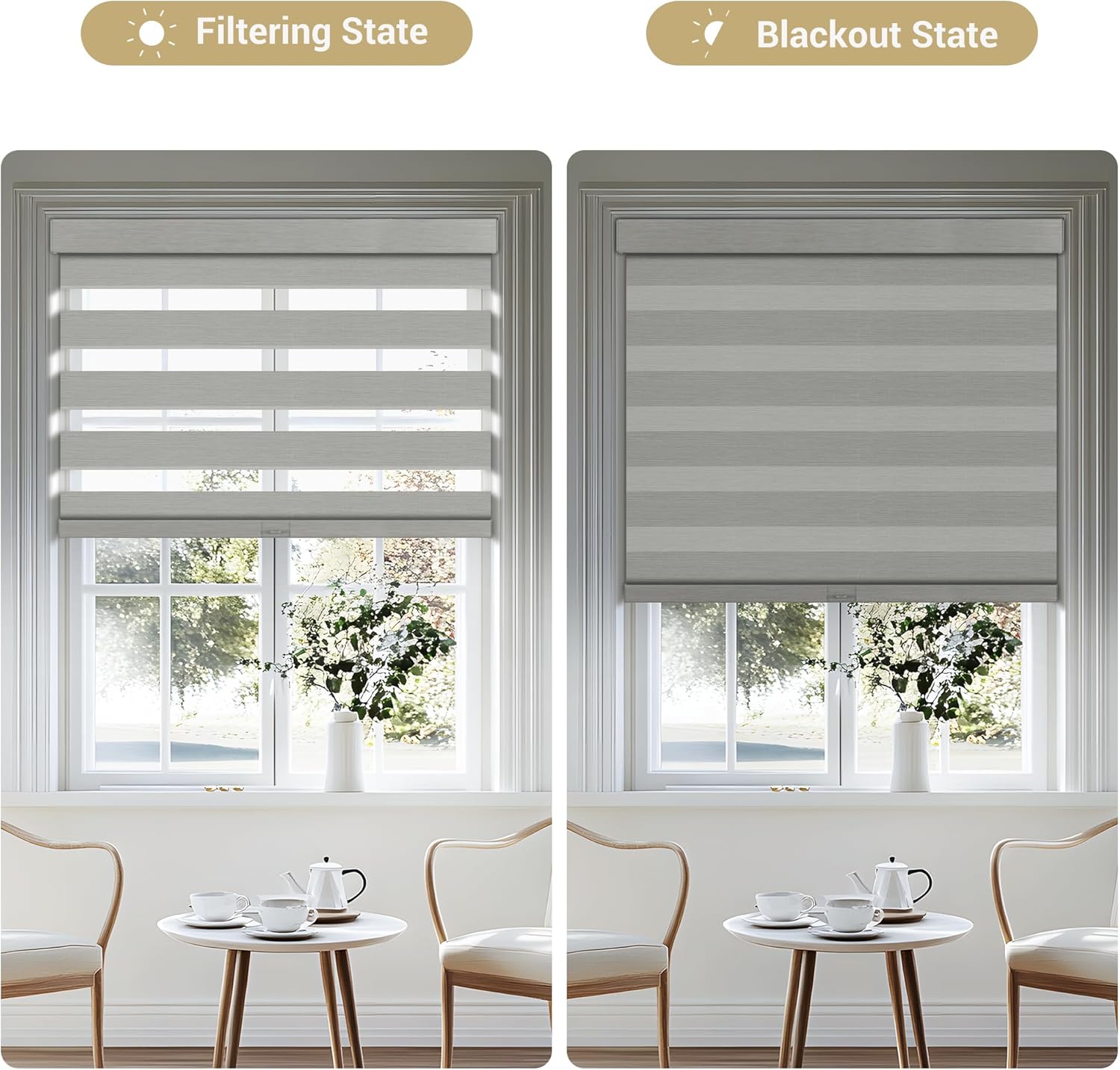 Cordless Zebra Blinds for Windows, Blackout Interior Blinds,Easy to Install,UV Protection,for Offices and Home,Custom Roller Shades, Mousse Light Grey,80" W x 88" H