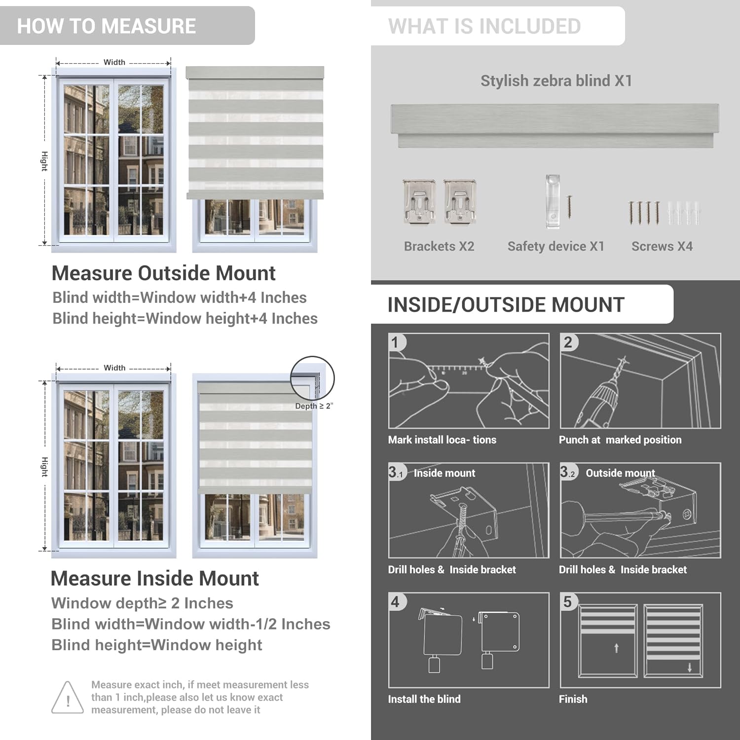 - 【Customize Size】INSIDE MOUNTING roller blinds require a minimum 2" window frame depth. Blackout roller window shades custom windows shades width need to be 1/2" less than window width, The length of the shades is equal to the length of the window. OUTSIDE MOUNTING roller shades for windows need to be 4 inches wider and longer than window width and length for better coverage.If you can't find the size you need on the page, please contact us and we will give you for a custom solution.