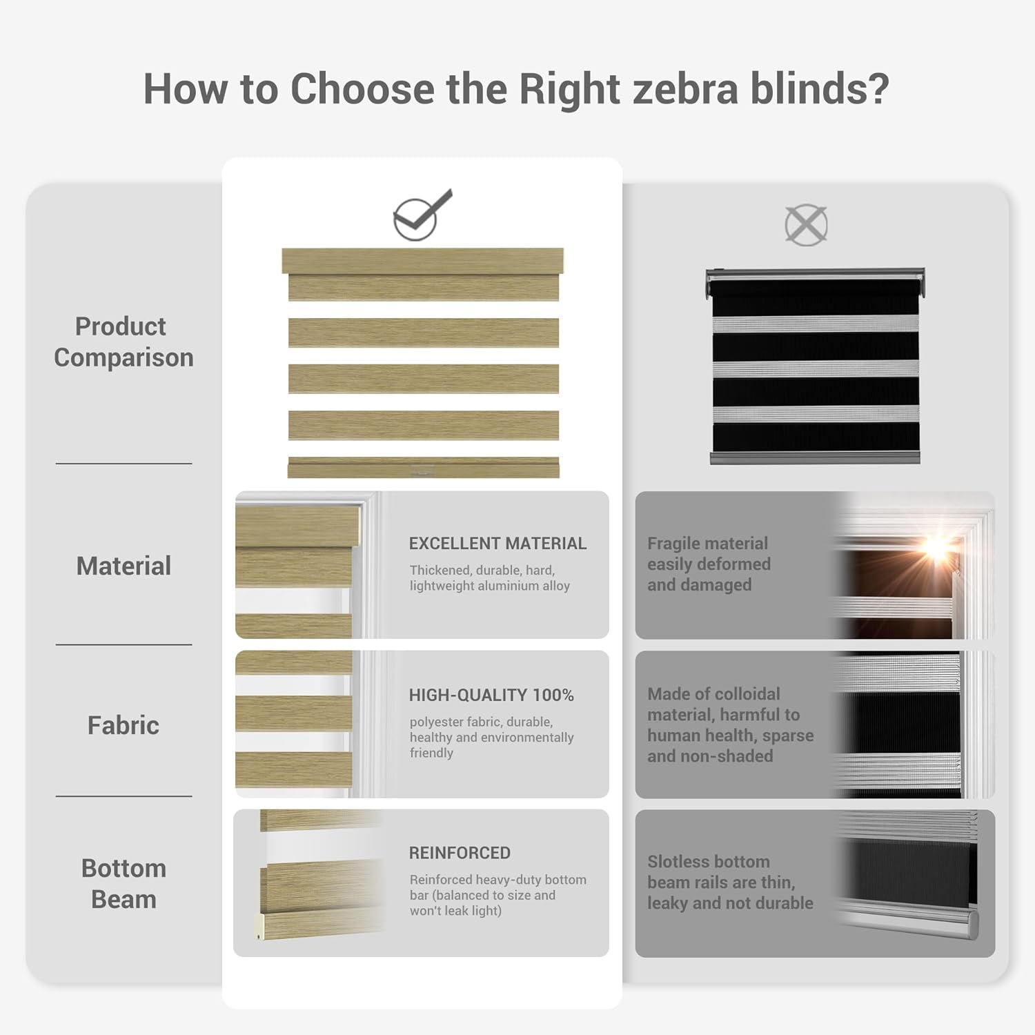 Cordless Zebra Blinds for Windows, Blackout Interior Blinds,Easy to Install,UV Protection,for Offices and Home,Custom Roller Shades, Mousse Light Bown,71" W x 64" H