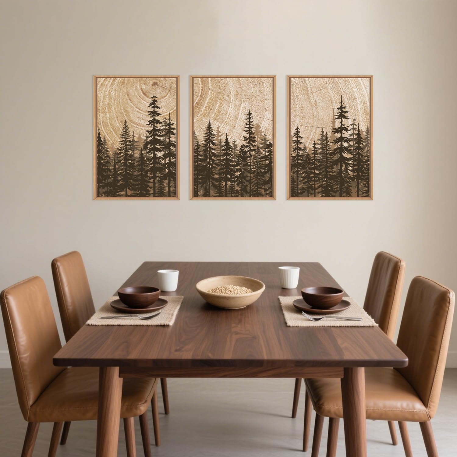 Pine Tree Framed Canvas Wall Art Set, Natural Woodland Landscape Wall Decor, Large Retro Forest Painting, Vintage Brown Artwork for Living Room, Bedroom, Kitchen, Study, Office - 16"x24"x3