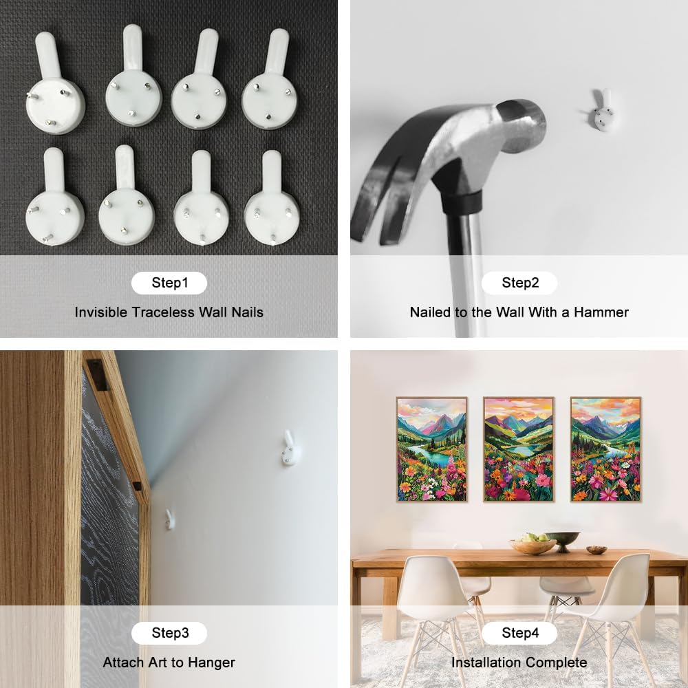- 【Wildflower Framed Canvas Wall Art】This wildflower blossom decor Art Set is a popular choice for enhancing the beauty of a variety of interiors. The wall decor set consists of colourful mountains, jungles, wildflowers, clouds and rivers in harmony, creating a balanced and unified visual effect. Whether you choose to place it in your living room, bedroom or office, its non-glamorous colours create a serene and visually pleasing environment.