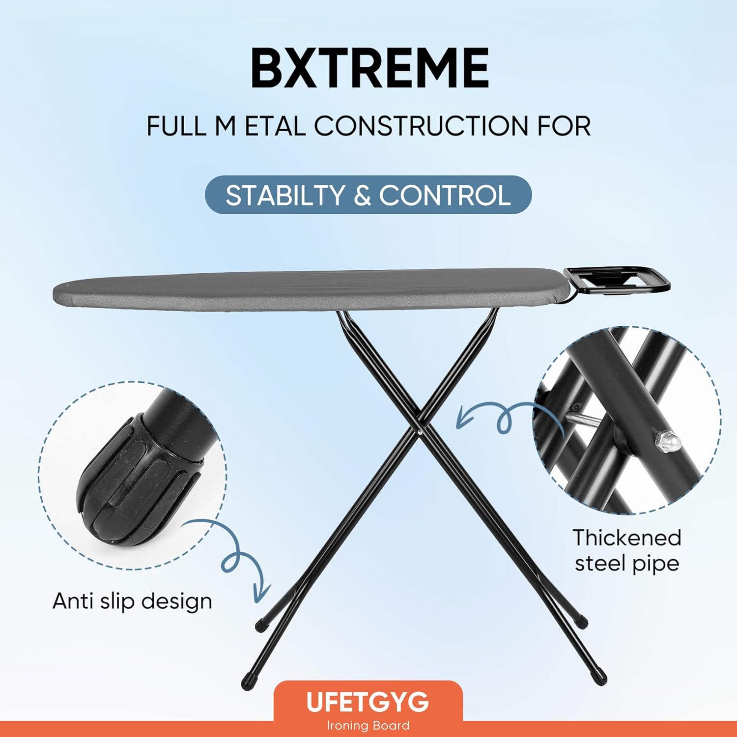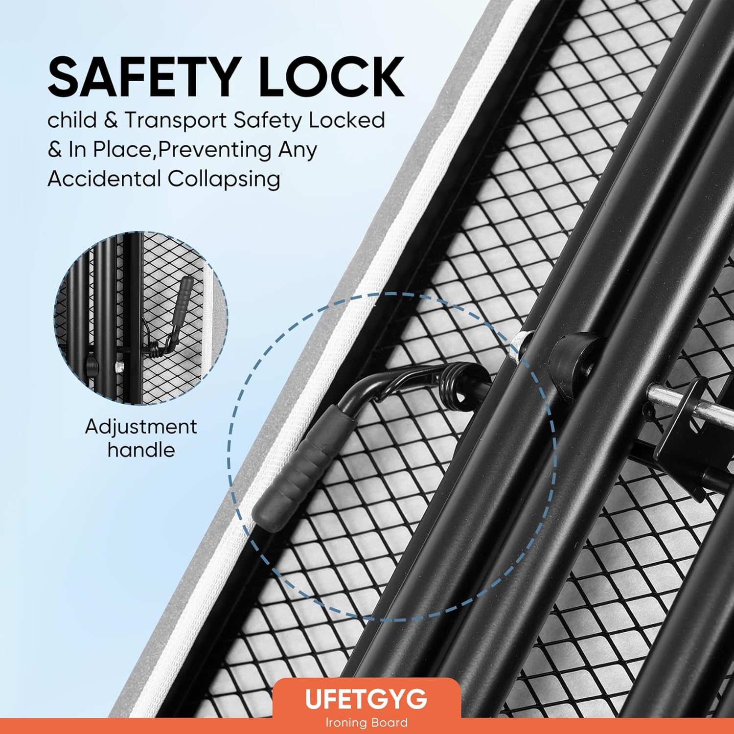 - Large Ironing Surface: With a generous ironing surface area of 43x13 inches, our ironing board provides ample space for ironing various clothing items, making the task effortless and efficient