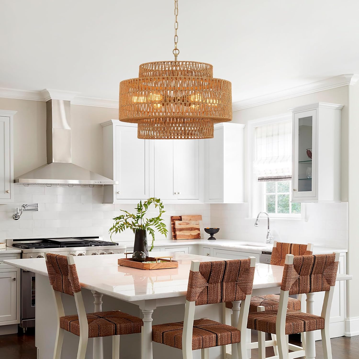 - 【Easy to Install】Our rattan chandelier for dining room comes with all necessary hardware and an easy-to-follow installation guide.You'll have this elegant rattan chandelier hanging in no time, transforming your room with its allure.