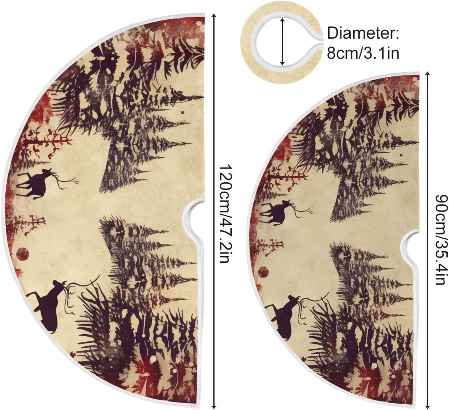 Vintage Red Elk Christmas Tree Skirt - 36 Inch Xmas Tree Mat for New Year Party Decorations