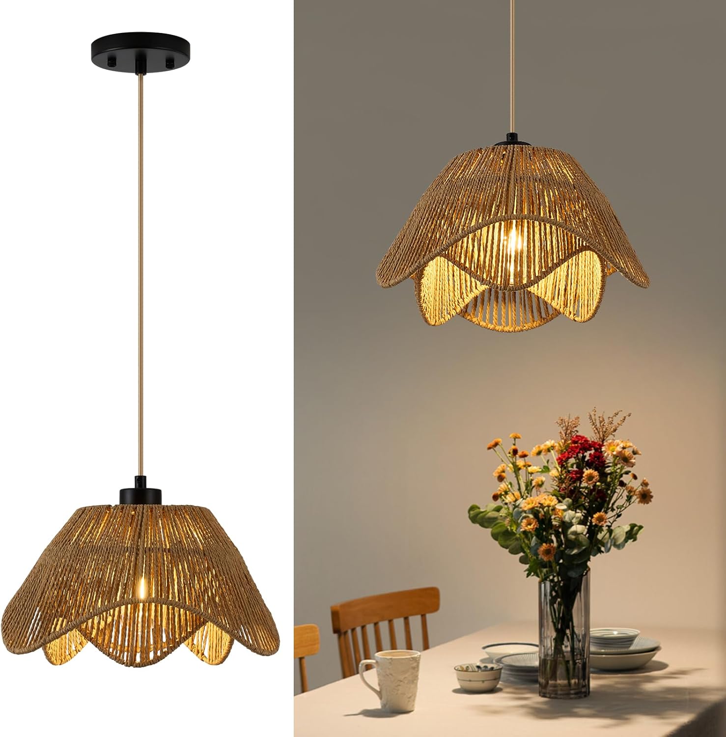 - 【Easy to Install】Boho pendant light includes all mounting hardware and instructions for a simple construction that is basically already assembled. Simply attach the shade to the base and screw in the bulb to bring a nature element to your home.
