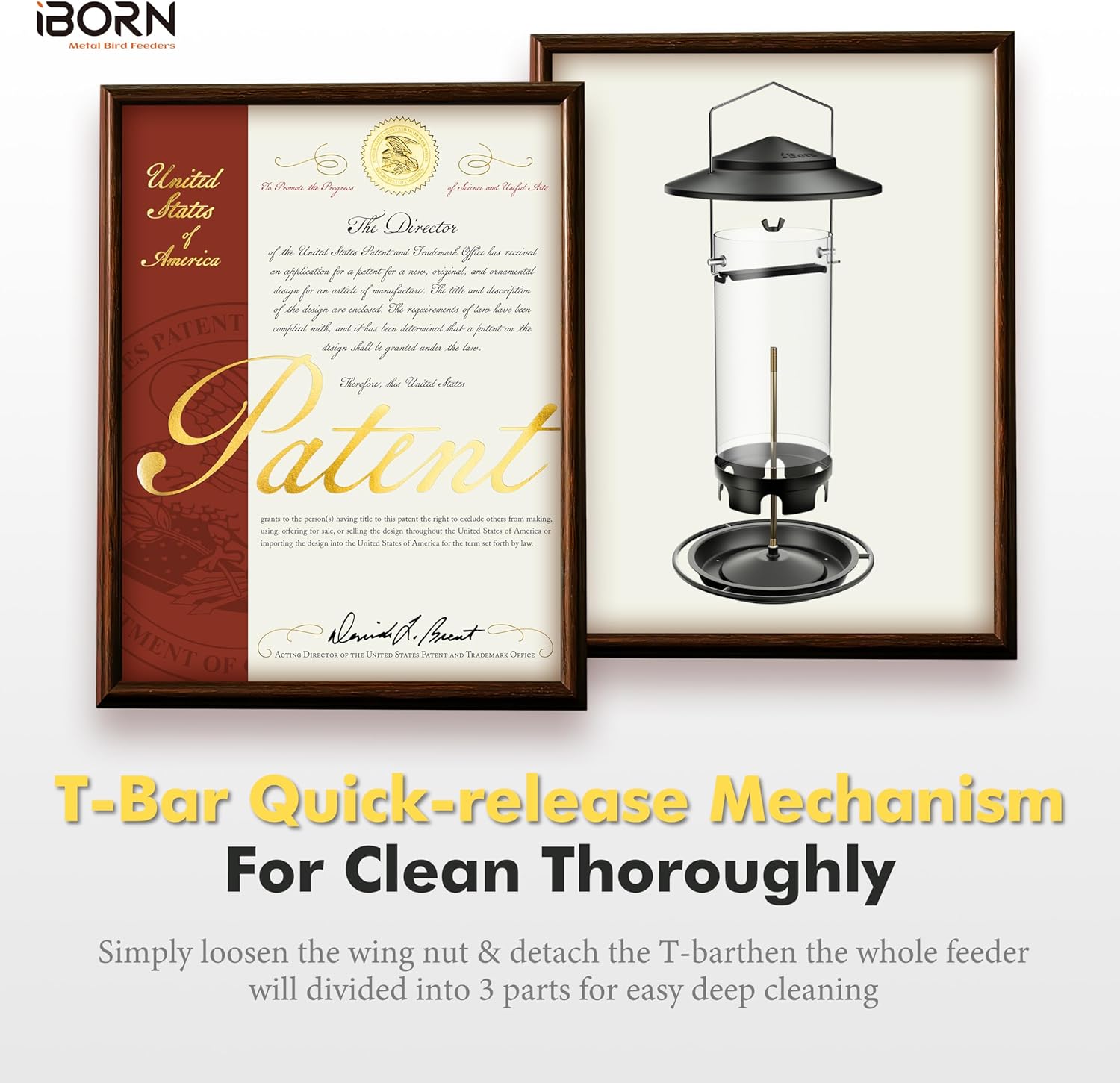 - 【2.8lb Large Capacity&Port Control Seeds Flow,Fill Once a Week】iBorn Large Capacity Bird Feeder Holds up to 2.8lb of seed,reduce the number of regular fills.With right size of each port control seeds flow into the tray.Reduce excess seeds waste and make it easier to fill once a week.