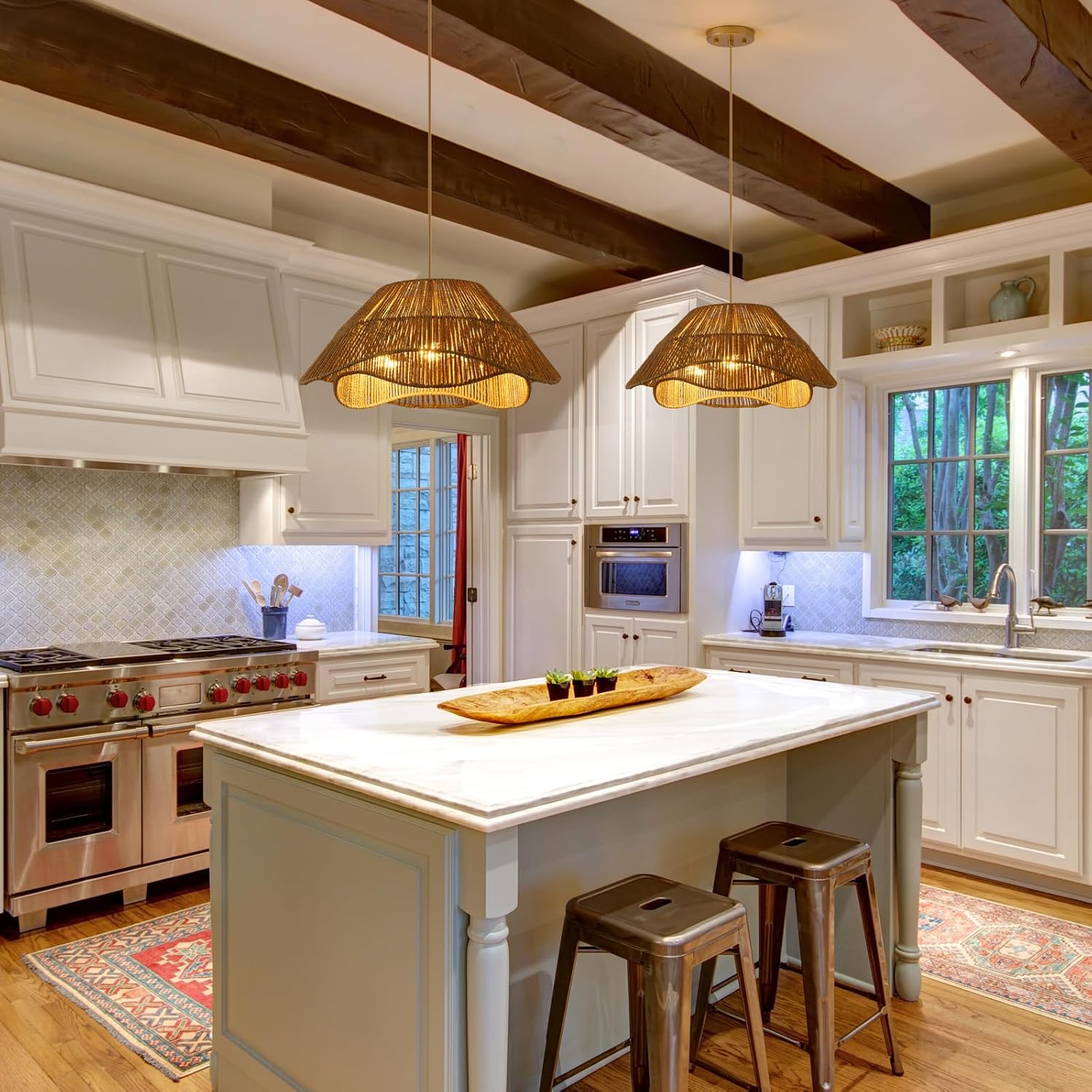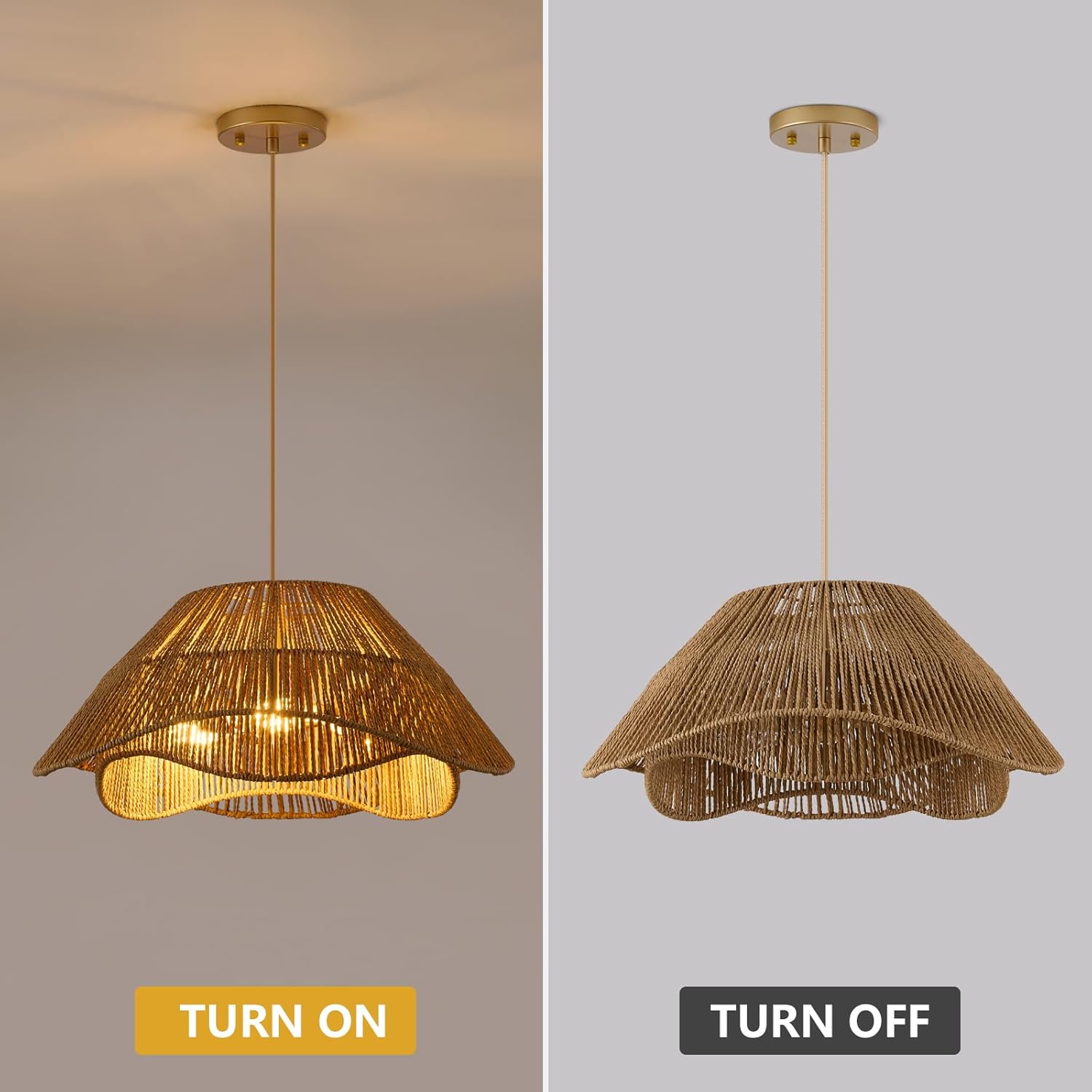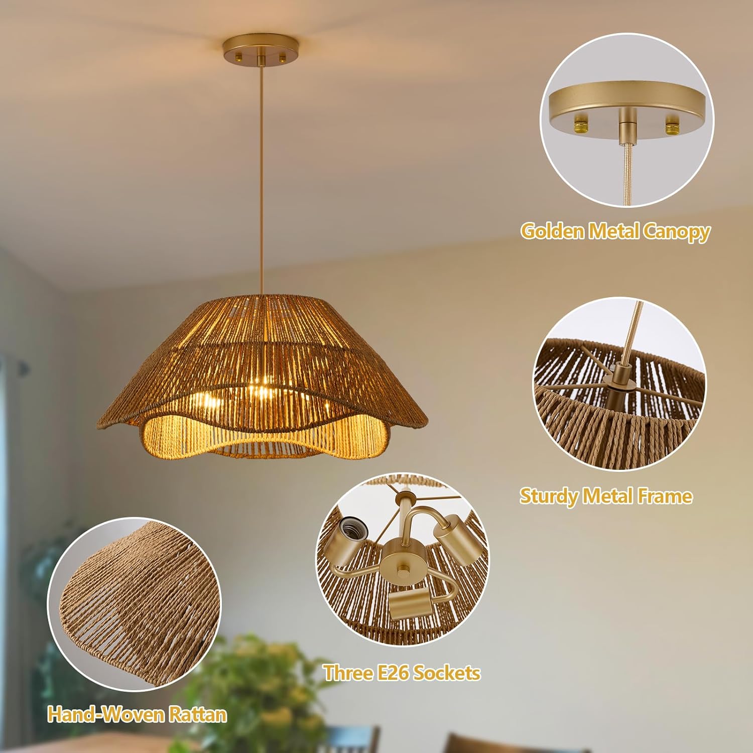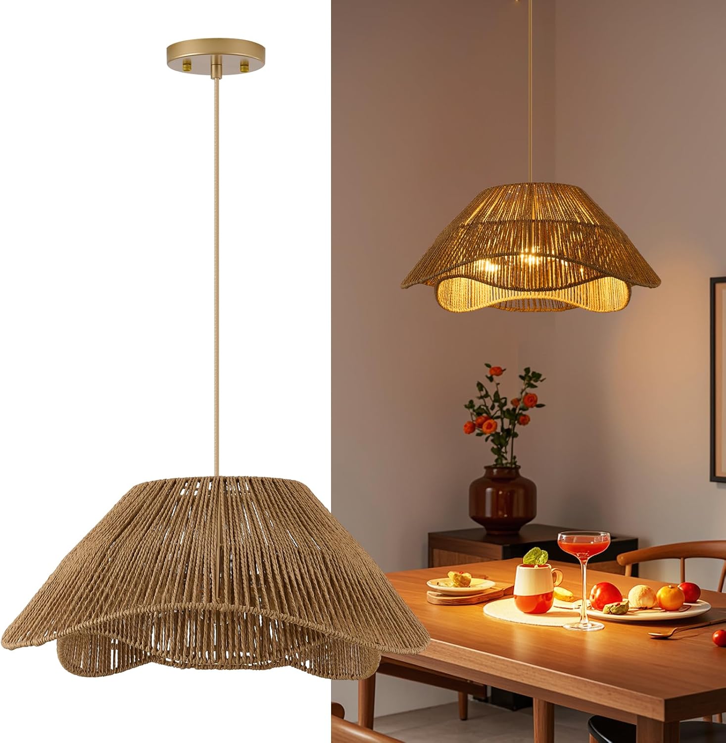 - 【Wide Applications】Rattan pendant light fixture exudes natural charm and is perfect for boho and rustic décor, creating a cosy and welcoming atmosphere, perfect for dining room, kitchen island, living room, bedroom, entryway or hallway, etc.