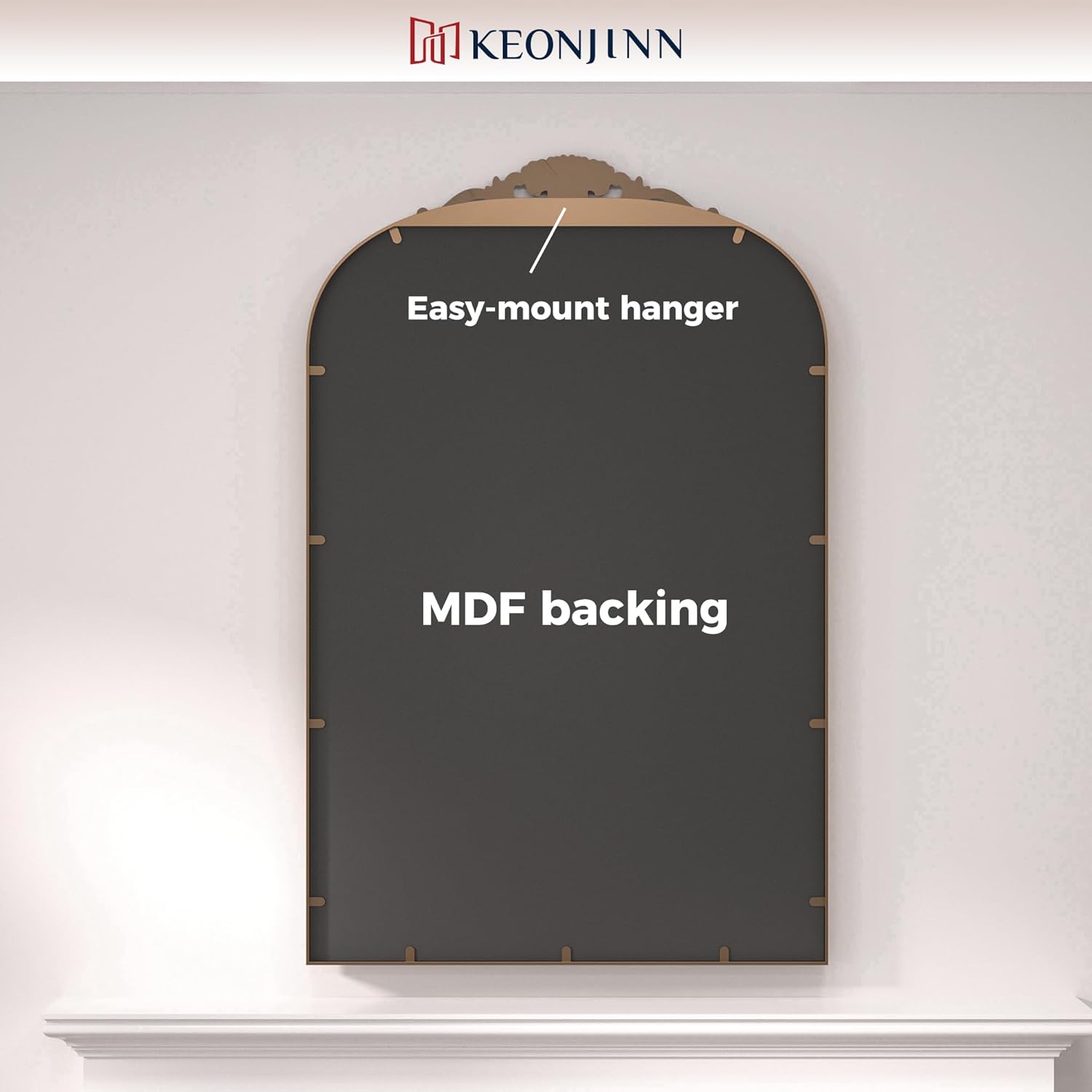 - 【Baroque-inspired Charm】 Keonjinn Antique Arched Mirror is a timeless piece designed to elevate your wall décor. Inspired by the opulence of the Baroque era, this mirror exudes historical charm with its graceful arched design and intricate wooden floral crown, creating a captivating focal point in any room.